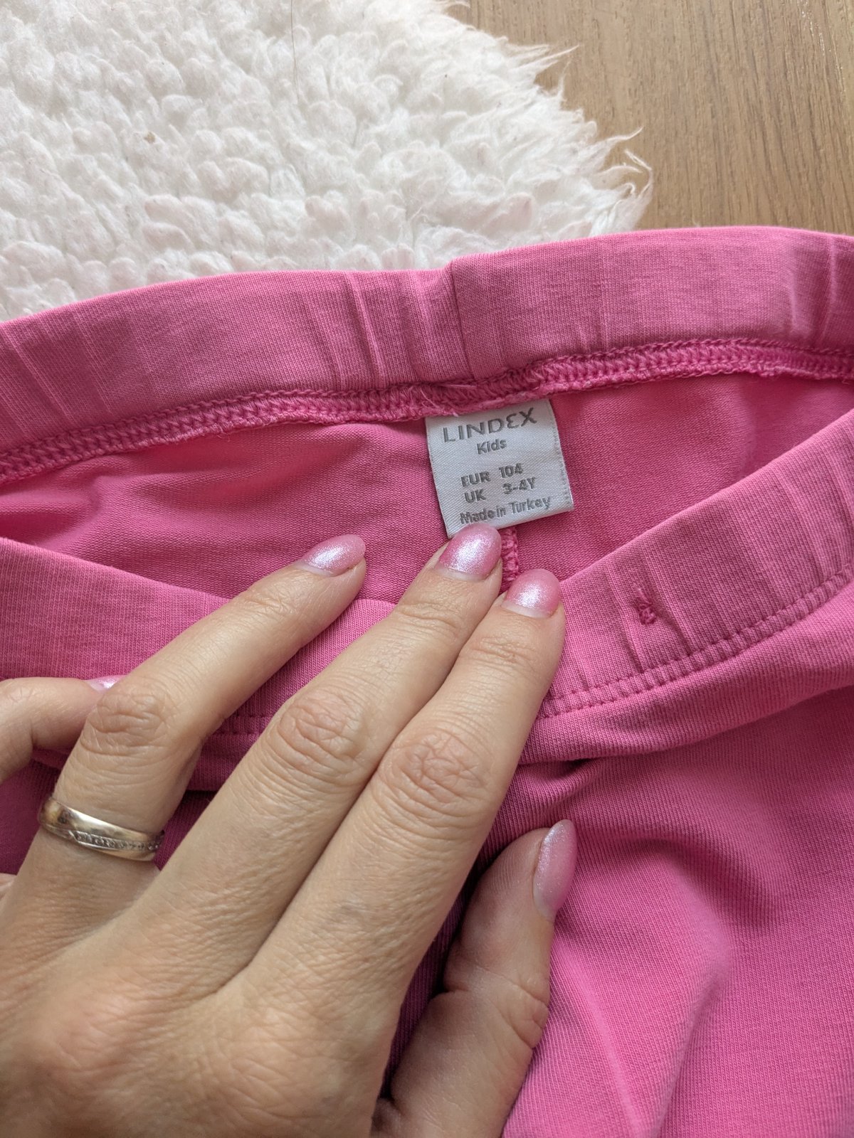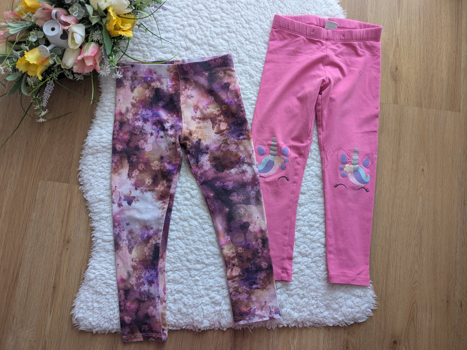 Vzorovane next 110, ružové lindex 104, su obe rovnako dlhe. Lindex na jednom kolienku obrazok jemne osuchany, ale slabo vidieť. Next maju trochu práci chlpok. Plus posta.