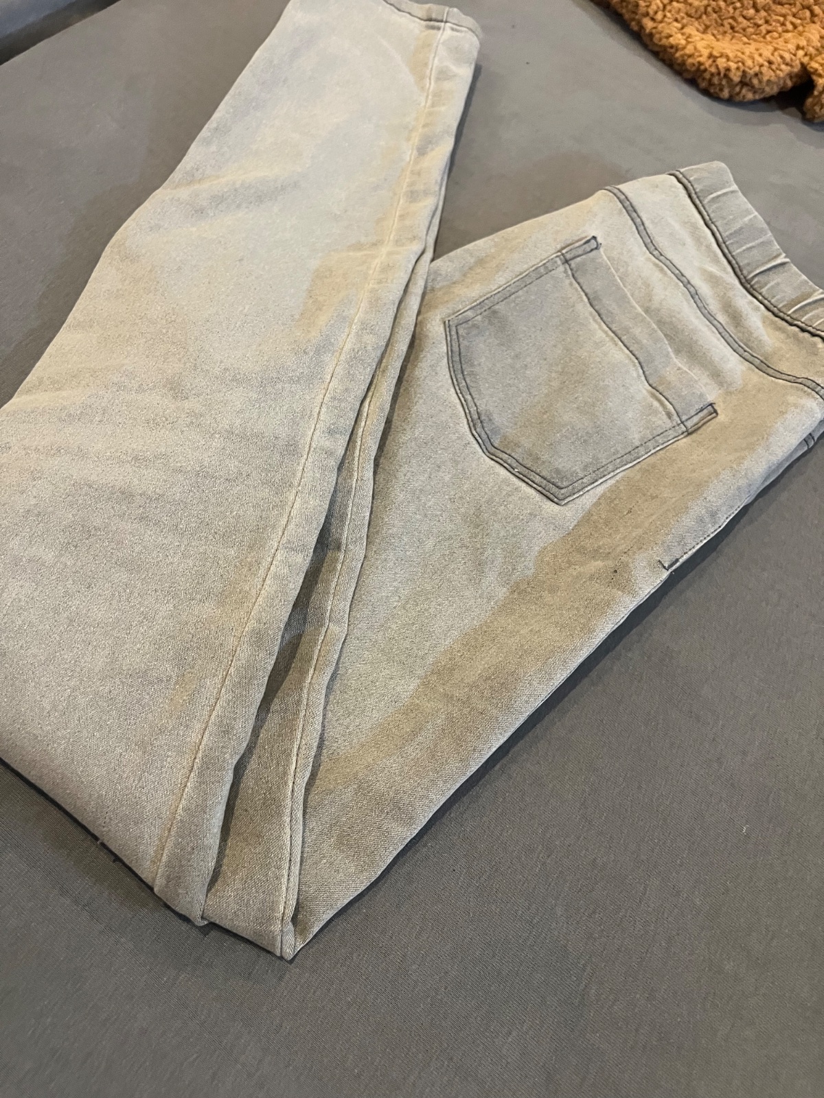 Svetlosivé rifle /džegínsy vo veľmi dobrom stave. Pás je na gumu. Váha: 282 gr.