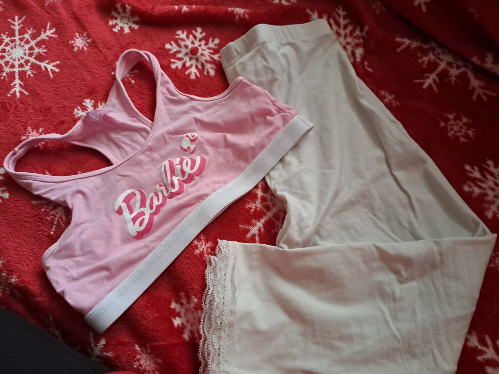 Biele tristvrtove leginy a tričko krátke Barbie Pepco