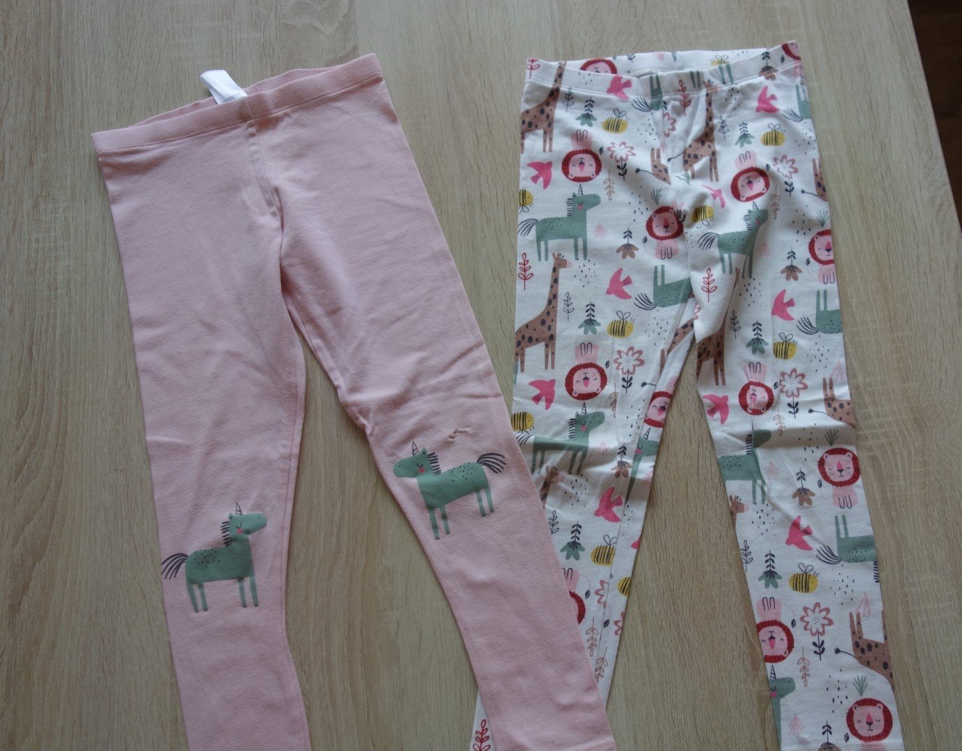 2 ks pekných legín. Ružové nosené na kolienku zašitá dierka. Vzorované ako nové.