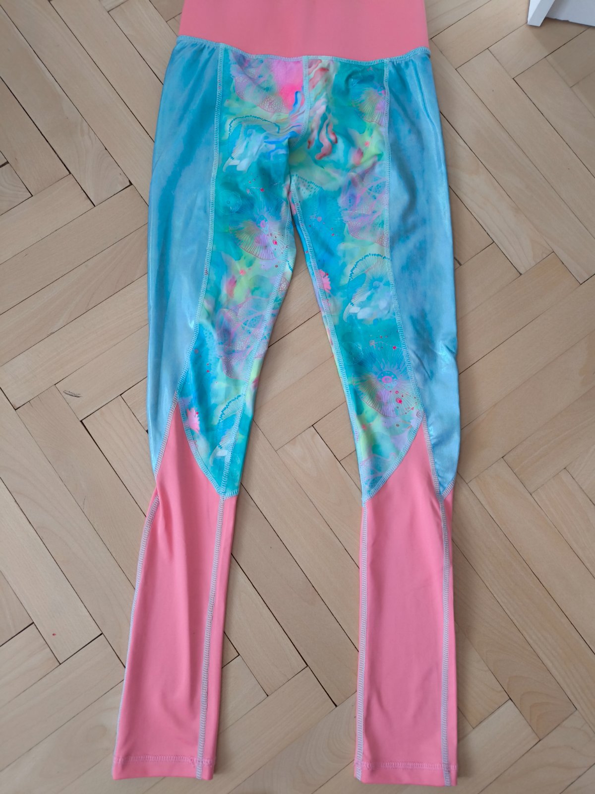 Pekné málo nosené legíny. Celková dĺžka 86,5cm , dĺžka od rozkroku dole 65,5cm a šírka pása v kľude 26,5cm