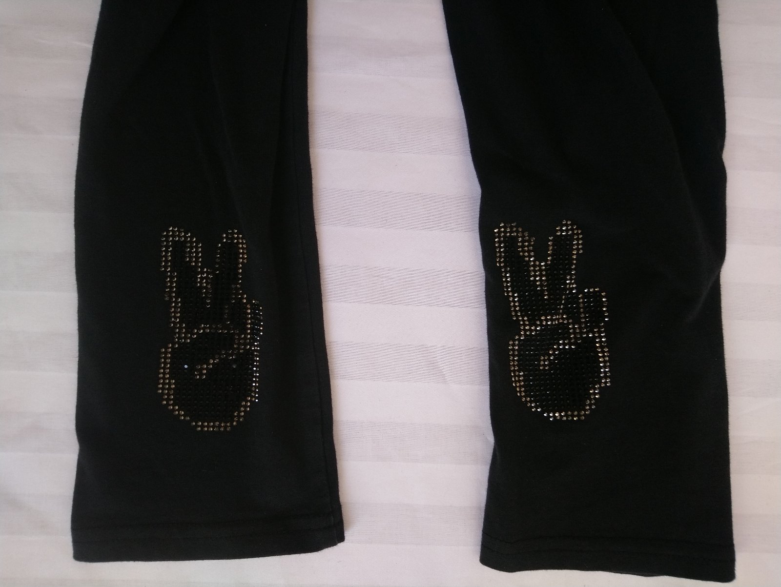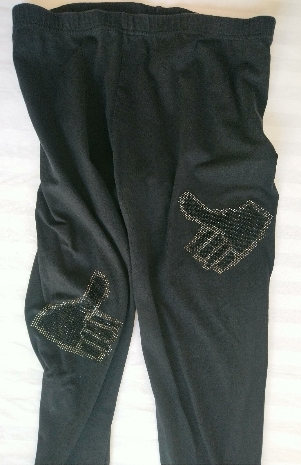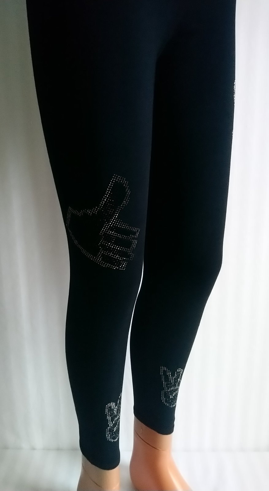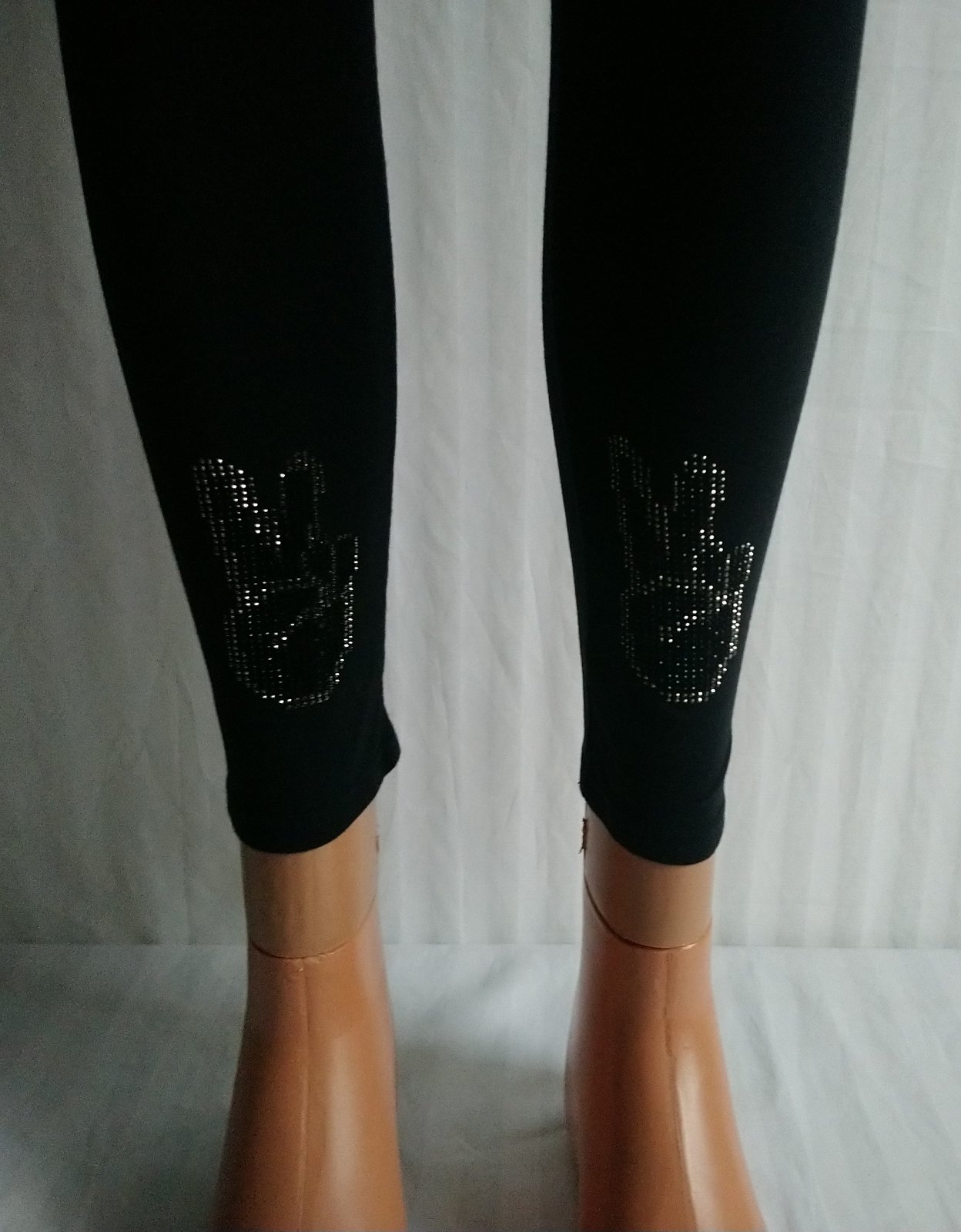 dámske čierne elastické legíny ozdobené kamienkovým motívom na stehnách a dole, v páse na gumu,