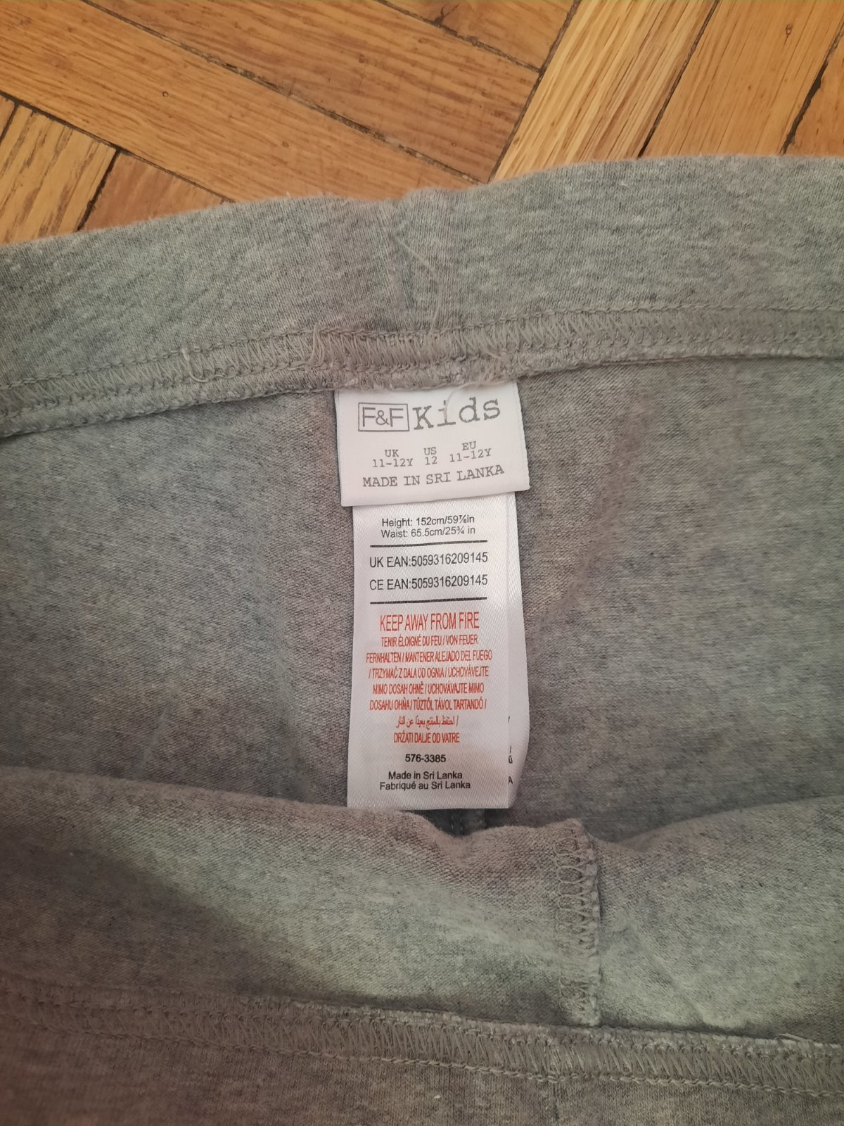 Dvoje tvamomodré legínky s bielimi pásikmi, kúpené v Tesco. Veľkosť písaná 12-13r ale skôr sedia na 152. Celková dĺžka je 81 cm, pás 30 cm a dole ako je členok je šírka 11 cm. Legínky sú klasické,...