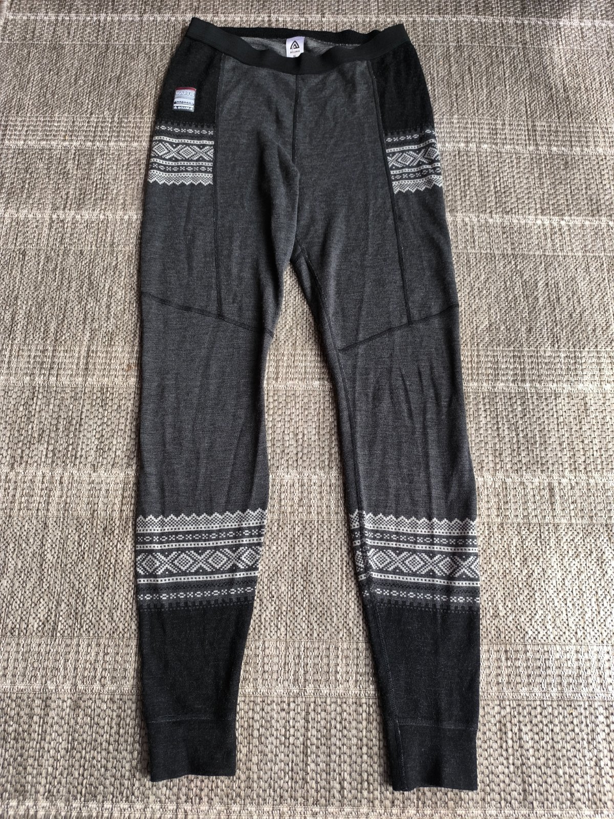 Vlnené legíny zo 100% merino vlny. Sú hrubšie, dajú sa nosiť samostatne alebo ako spodná vrstva/spodky pod iné nohavice, napr. na turistiku, lyžovačku, alebo v zime kdekoľvek. Vo výbornom stave. Unisex. Nórska outdoor značka Aclima. Veľkosť XL, dĺžka 117cm, vnútorná dĺžka 86cm, šírka v páse 40-60cm, sú elastické.