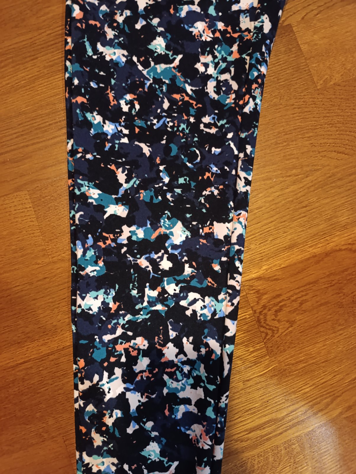 Veľmi pohodlné legíny so vzorom v modro - čiernej kombinácii farieb. V páse široká guma. Sú vo veľkosti 38, no sedia skor na S. Je to asi podľa pohodlnosti. Príjemný materiál