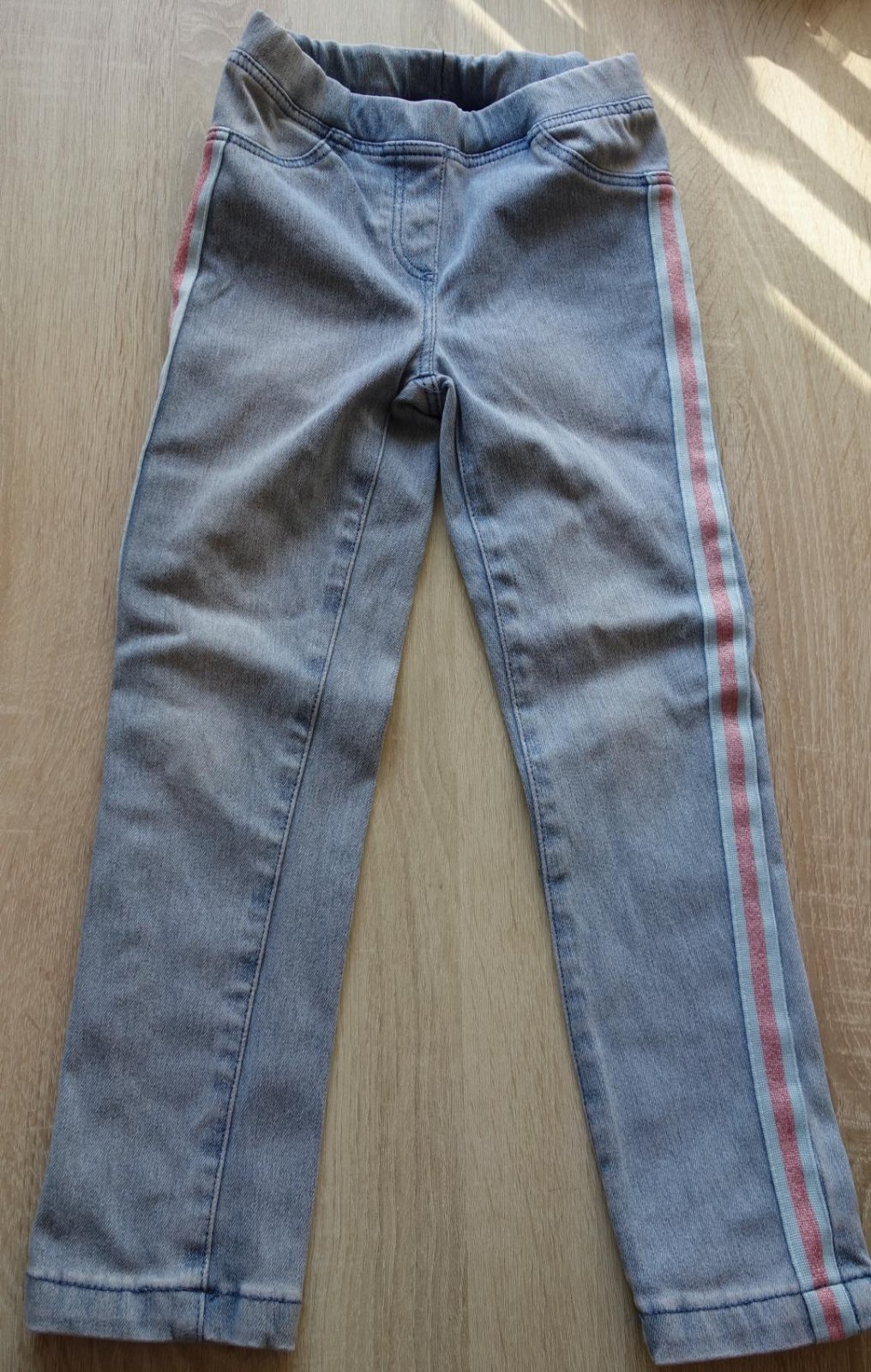 Rifľové džegíny s pásikom na boku. Veľkosť odhadujem, chýba na štítku. Premeriam v prípade záujmu.