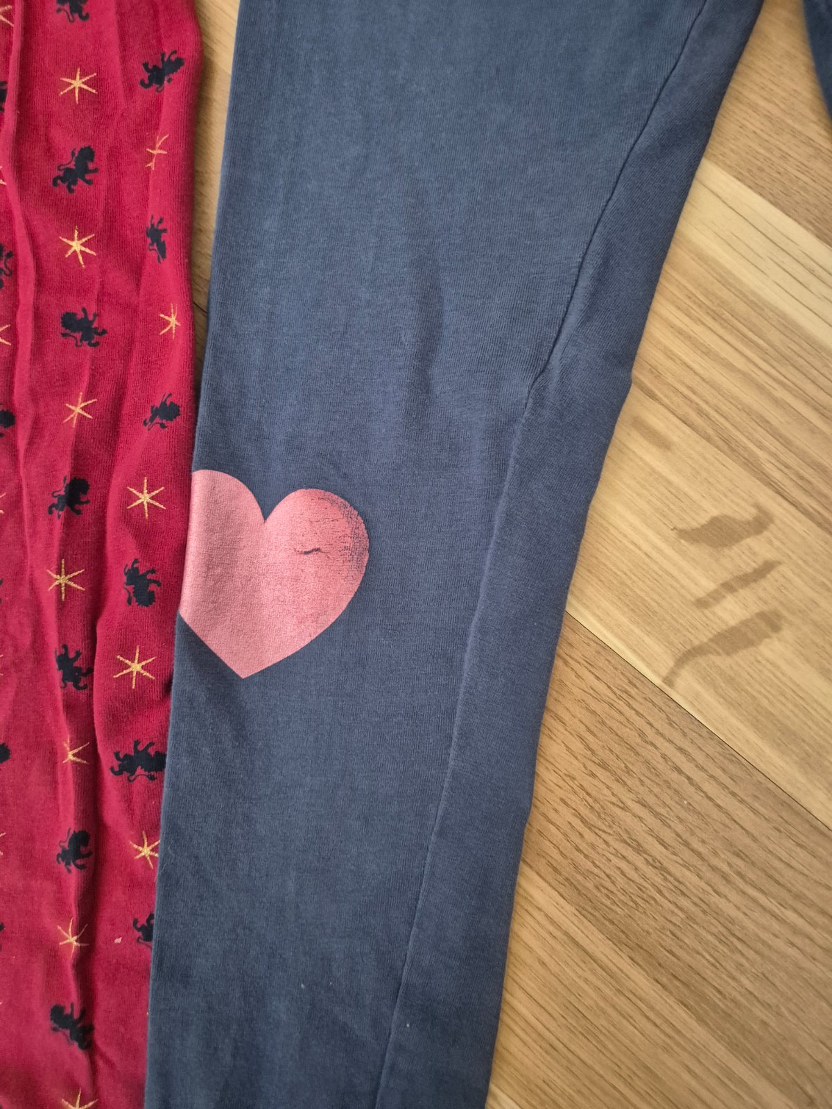 Legíny v dobrom nosenom stave, na modrých zošúchaná aplikácia na kolenách.