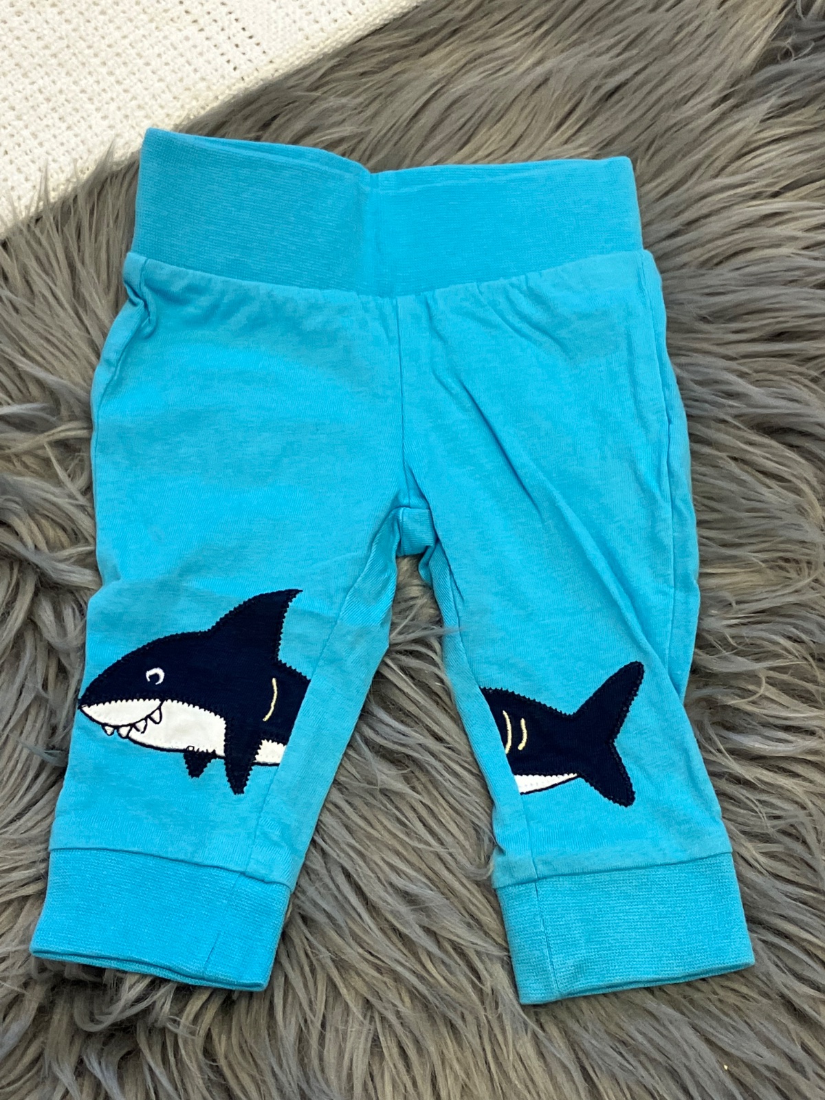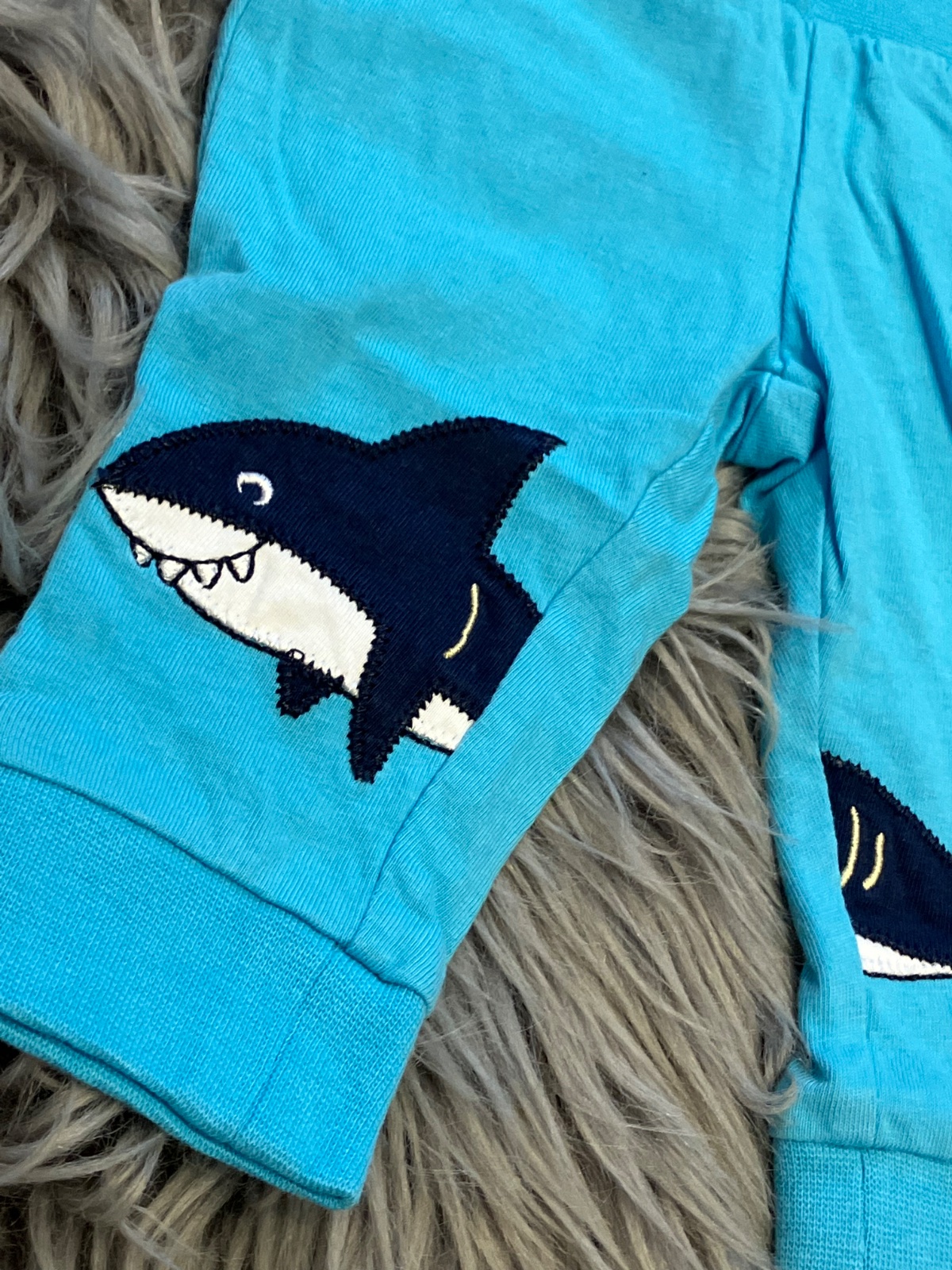 Chlapčenské legíny so žralokom, elastické, farba svetlomodro - tmavomodro - biela, materiál 100%bavlna.