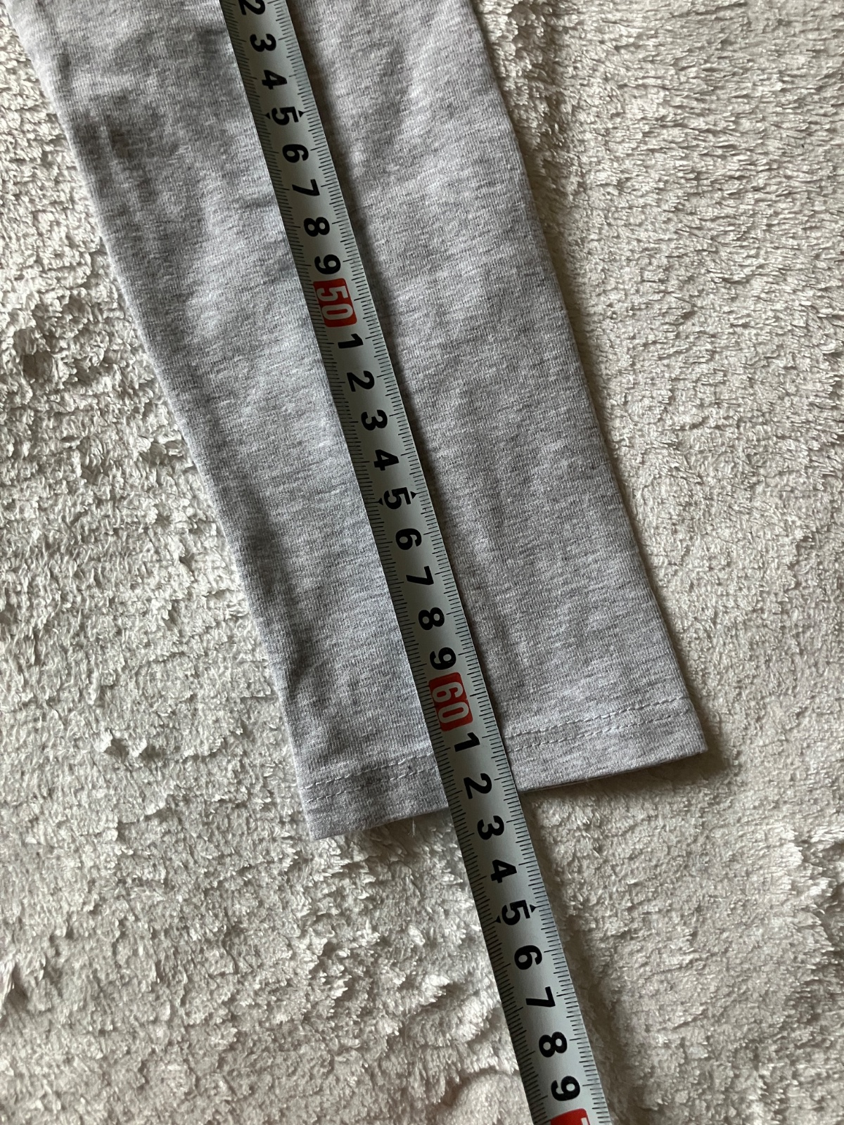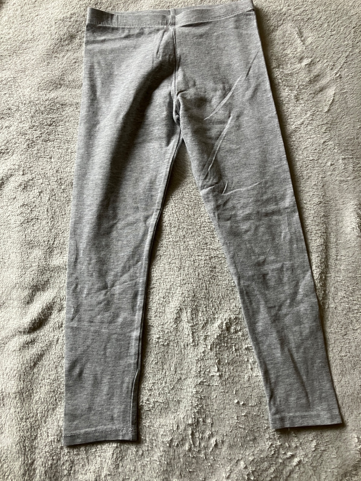 Svetlosede bavlnene leginy zn. F&F, velkost 6-7, rozmery na foto. Nosene malo, bez poskodeni, kolena nevytahane.