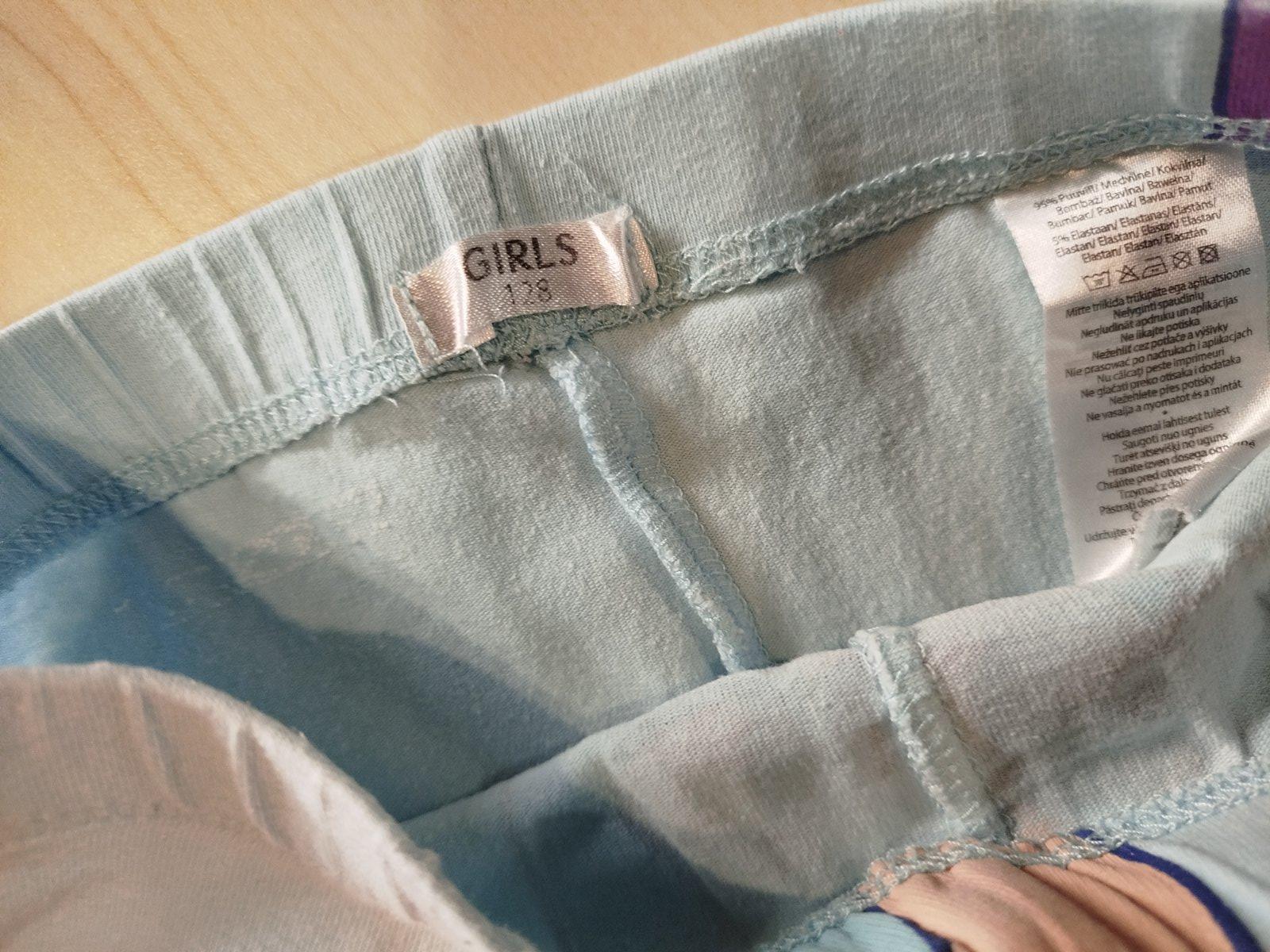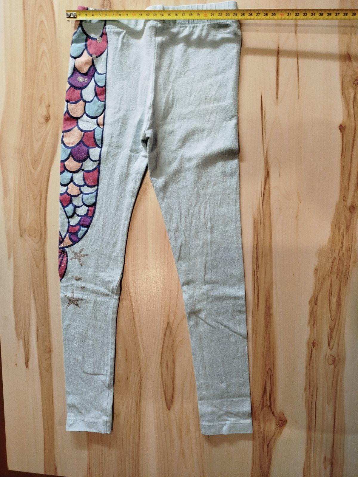 Veľmi dobrý stav! Dievčenské teplákové legíny, pás na gumu, na kolenách s potlačou, elastické. Dve zadné vrecká. Materiál 95%bavlna 5%elastan. ROZMERY: dĺžka: 66cm, od rozkroku dĺžka dole:49,5cm, ...