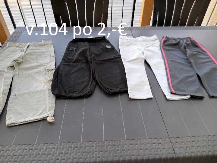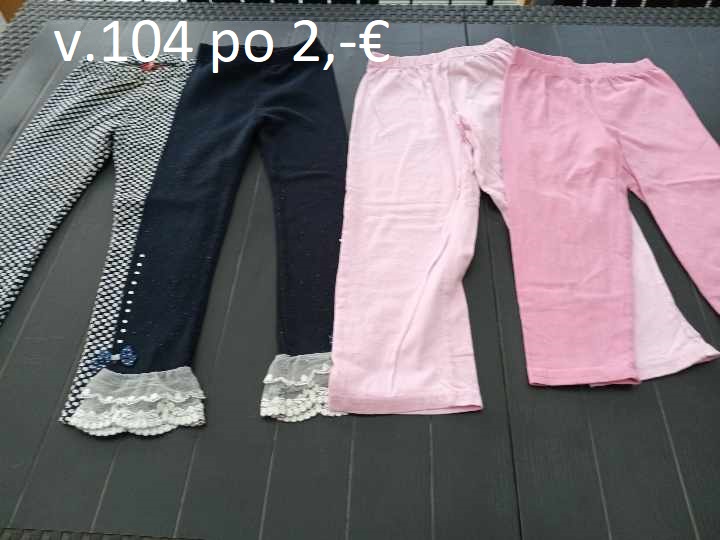 Všetky legínky idú po 2,- až na tie prvé najhrubšie nohavice-tehlová farba tie za 4 -+ poštovné. ( Posledný záber, tie šedé s vreckami cca 98 veľkosť, len porovnávam, nemá to štítok a ostatné o niečo menšie cca na 2 roky- obv.drieku 50cm) Posielam po úhrade na účet. Ďakujem