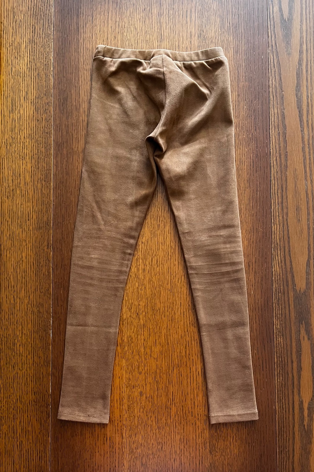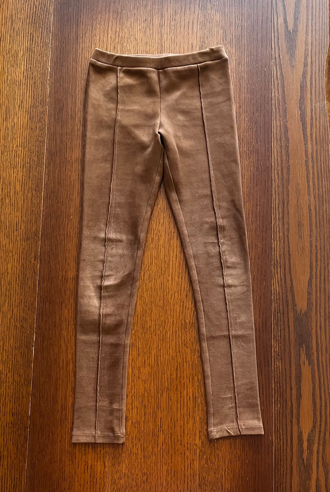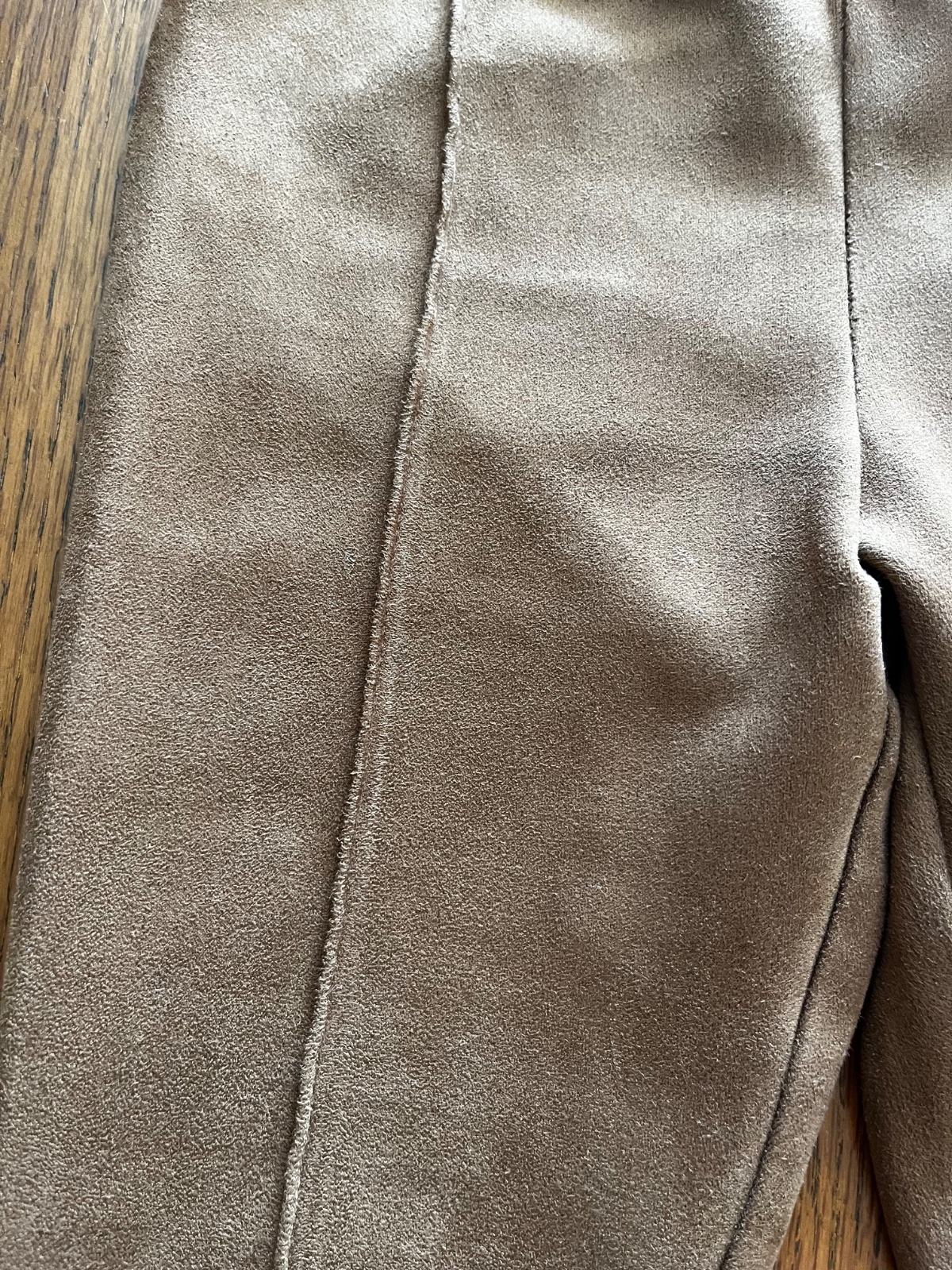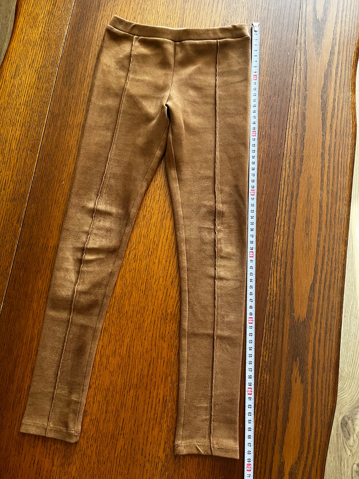 Sú vzhľadom ako z velúrovej kože, ale je to pružný eko materiál. Stredom nohavíc vedie ozdobný šev. Hodia sa na chladnejšie prechodné obdobie jesene a jari.