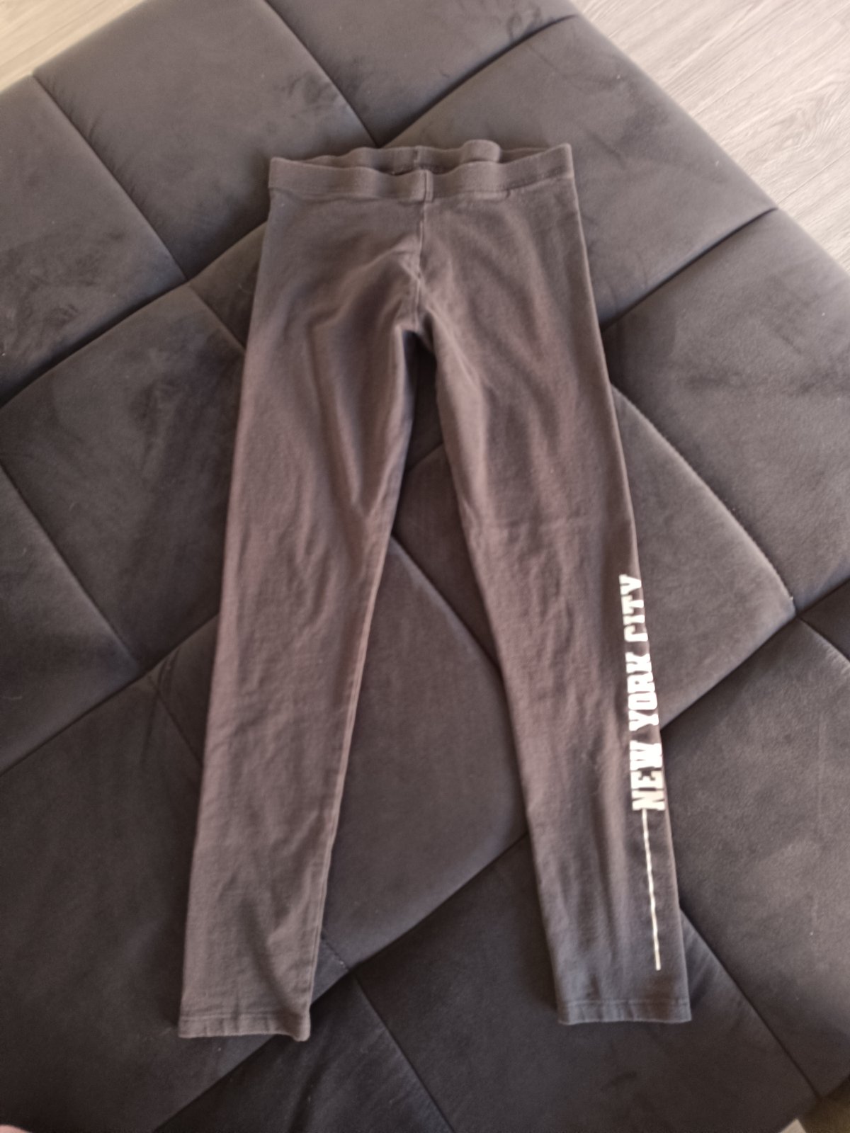 Rebrované bavlnené legíny tmavošedej farby Zn.F&F, vel.146 Bočná dĺžka 74cm Vnútorná dĺžka 59cm Pás 2x28 cm až 2x37cm Vo výbornom nosenom stave bez poškodení