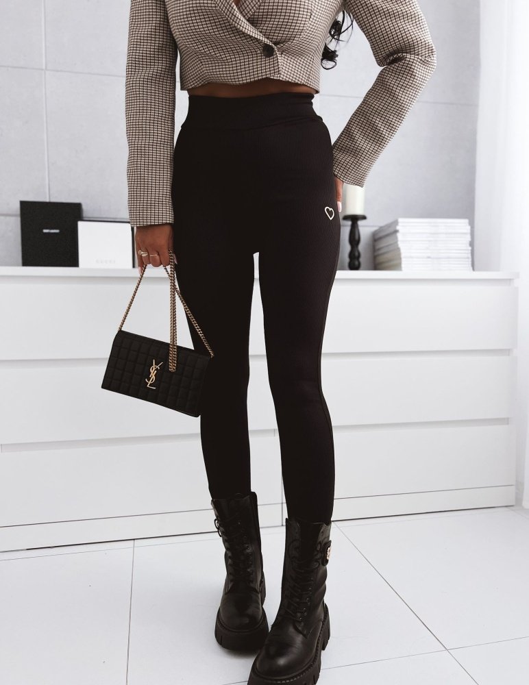 Čierné legíny Sivia sú veľmi pohodlné na každodenné nosenie. Legíny sú zateplené mikroflisom. Vďaka rebrovanej štruktúre sa prispôsobia k vašej postave a dodajú vám pohodlie aké potrebujete. Legíny ozvlaštňuje jemná vyšívka v tvare srdiečka.