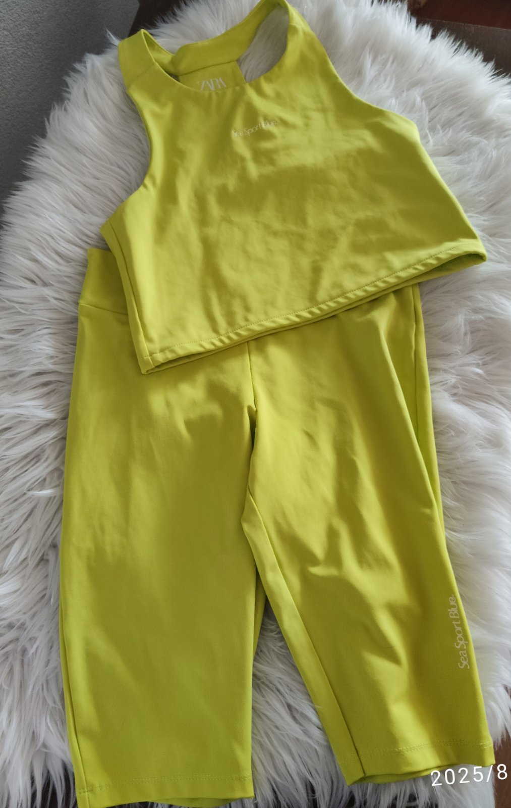 2ks športové legíny a top, farba batiková a žlto zelená. Veľkosť na 13-14 rokov. Veľmi dobrý stav.