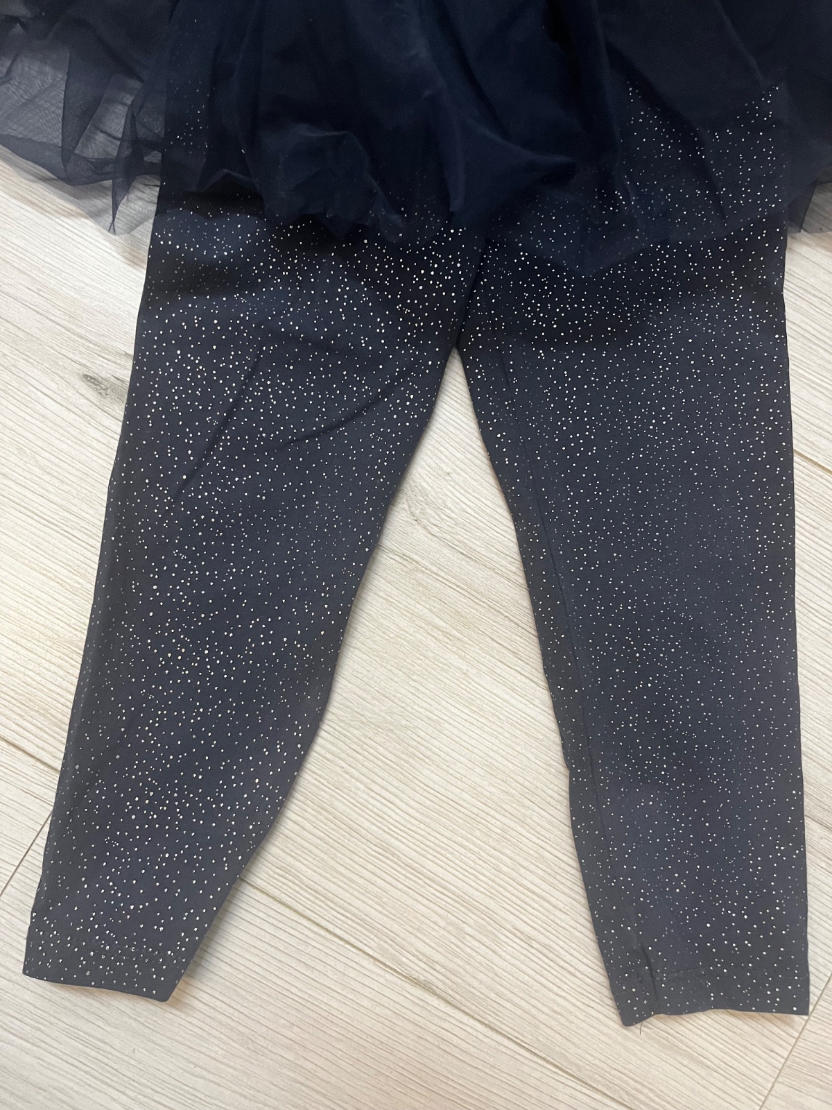 Predám tmavomodré suknoleginy značky Next, veľkosť: 110. Suknička je tylova a leginy majú strieborné trblietky.