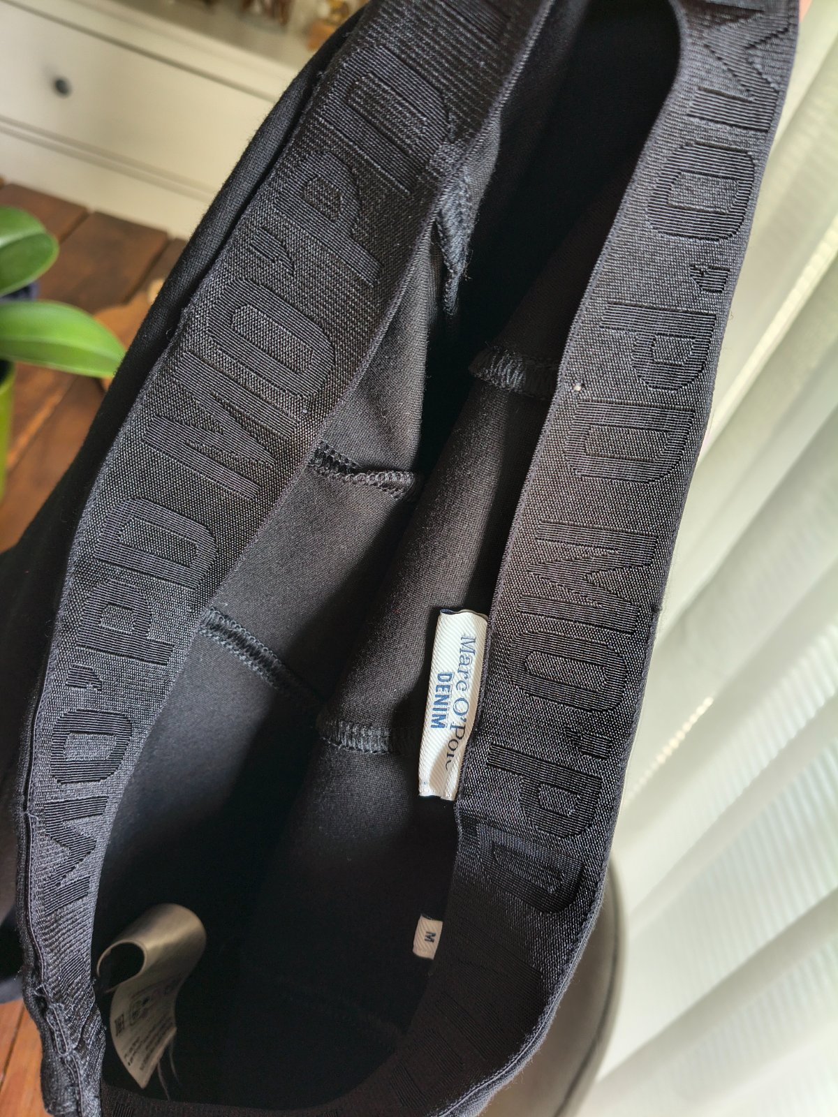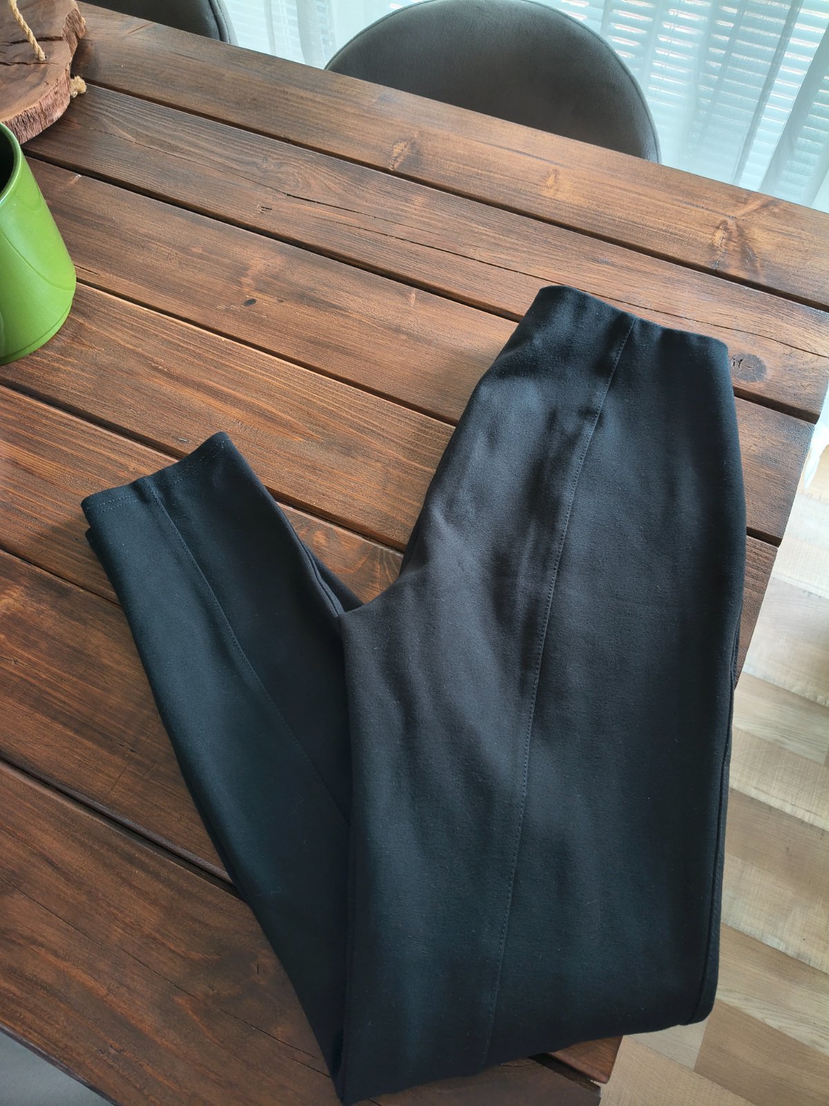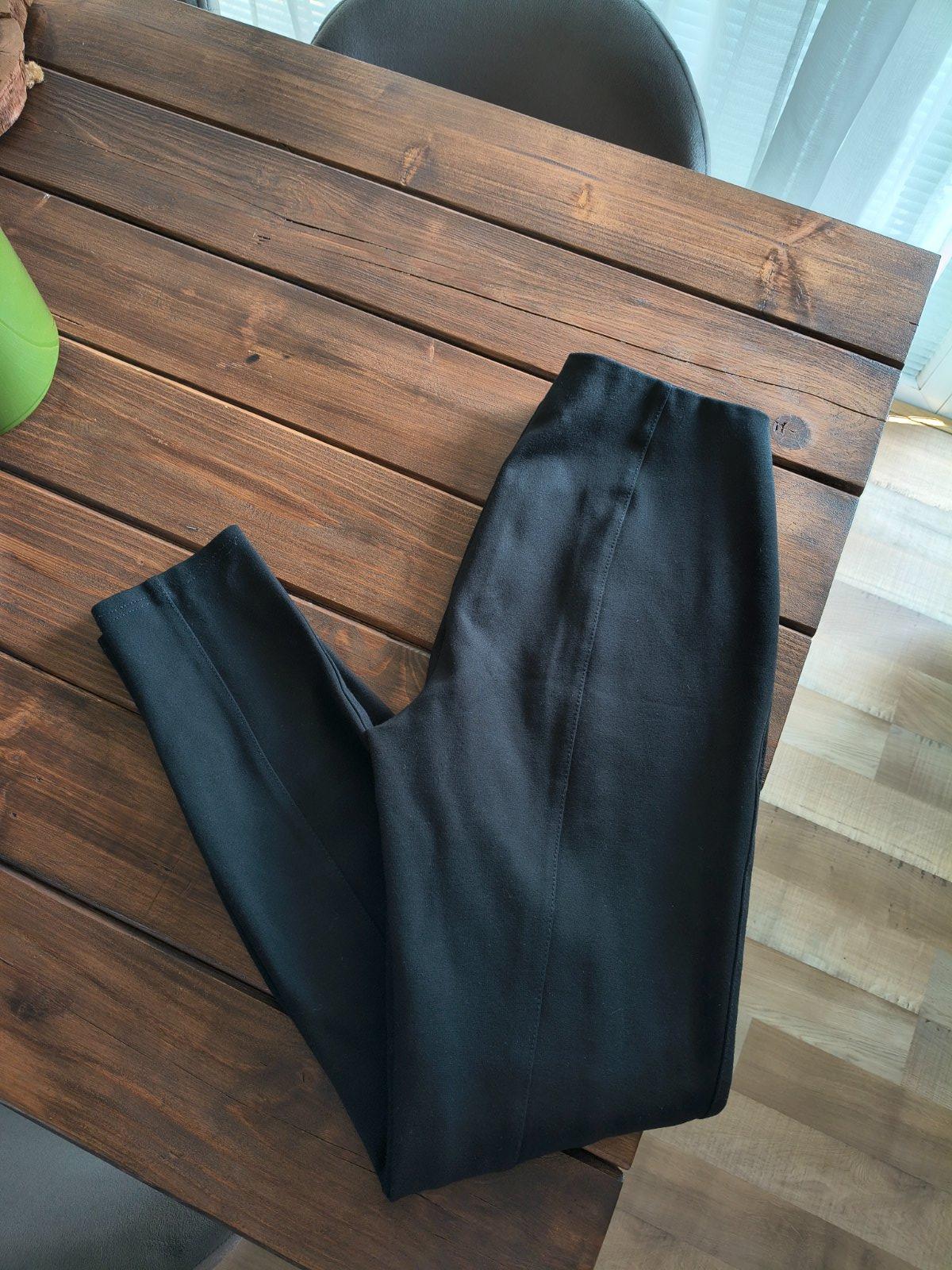 Predám krásne elastické značkové čierne legíny, vyšší pás,z vnútra v páse gumka s logom značky, veľkosť písaná M,nosené v 100% stave 🤗👍 skinny strih, obtiahnuté.Pás v kľude 35cm,natiahne sa až na 43cm, dĺžka 92,5cm, šírka spodnej časti nohavíc 12cm