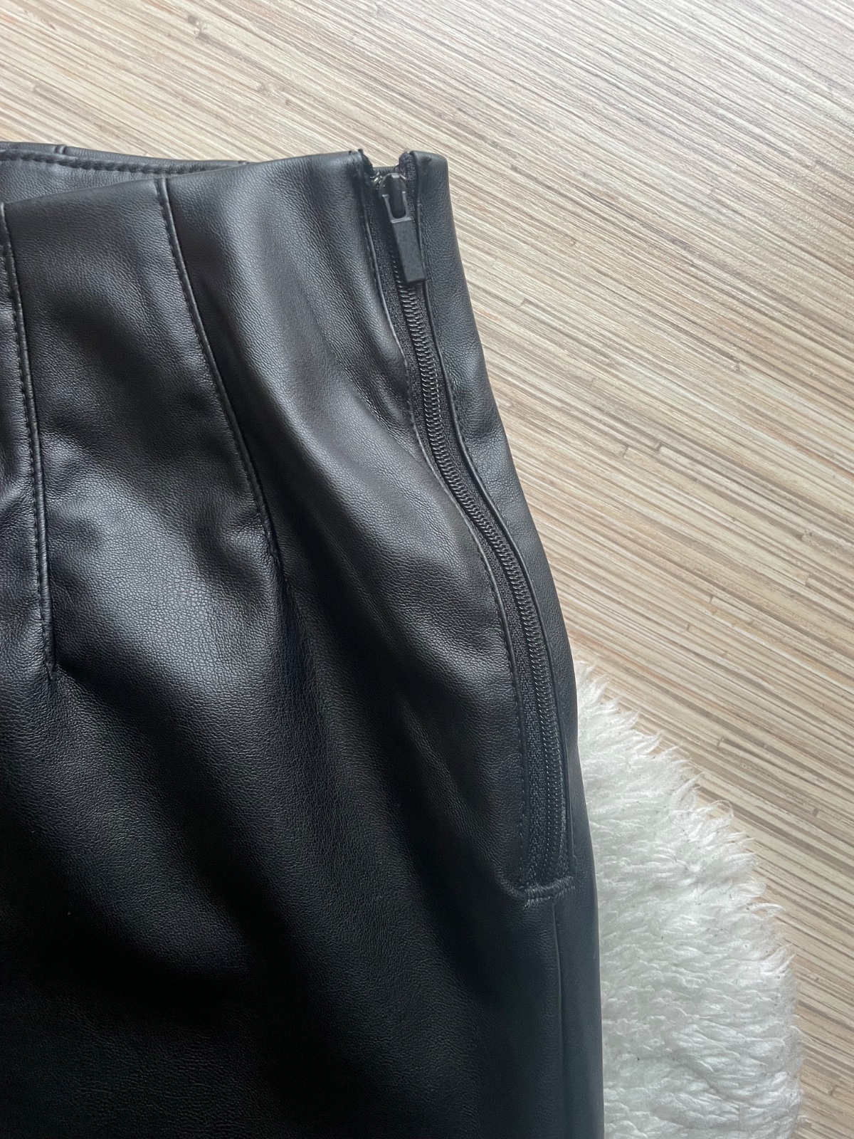 Kozenkove leginy makkuckej latky so zapinanim na bocny zips, v pase 6 cm guma, spodok nezaposity, natahovaci material. Raz oblecene.