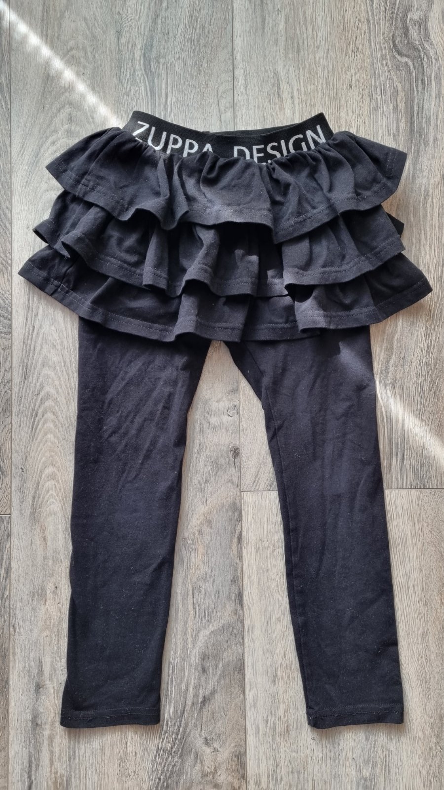Nenosené sukňolegíny. Celková dĺžka 64 cm. Mierne elastické. Farba je pekná čierna, nevypratá.