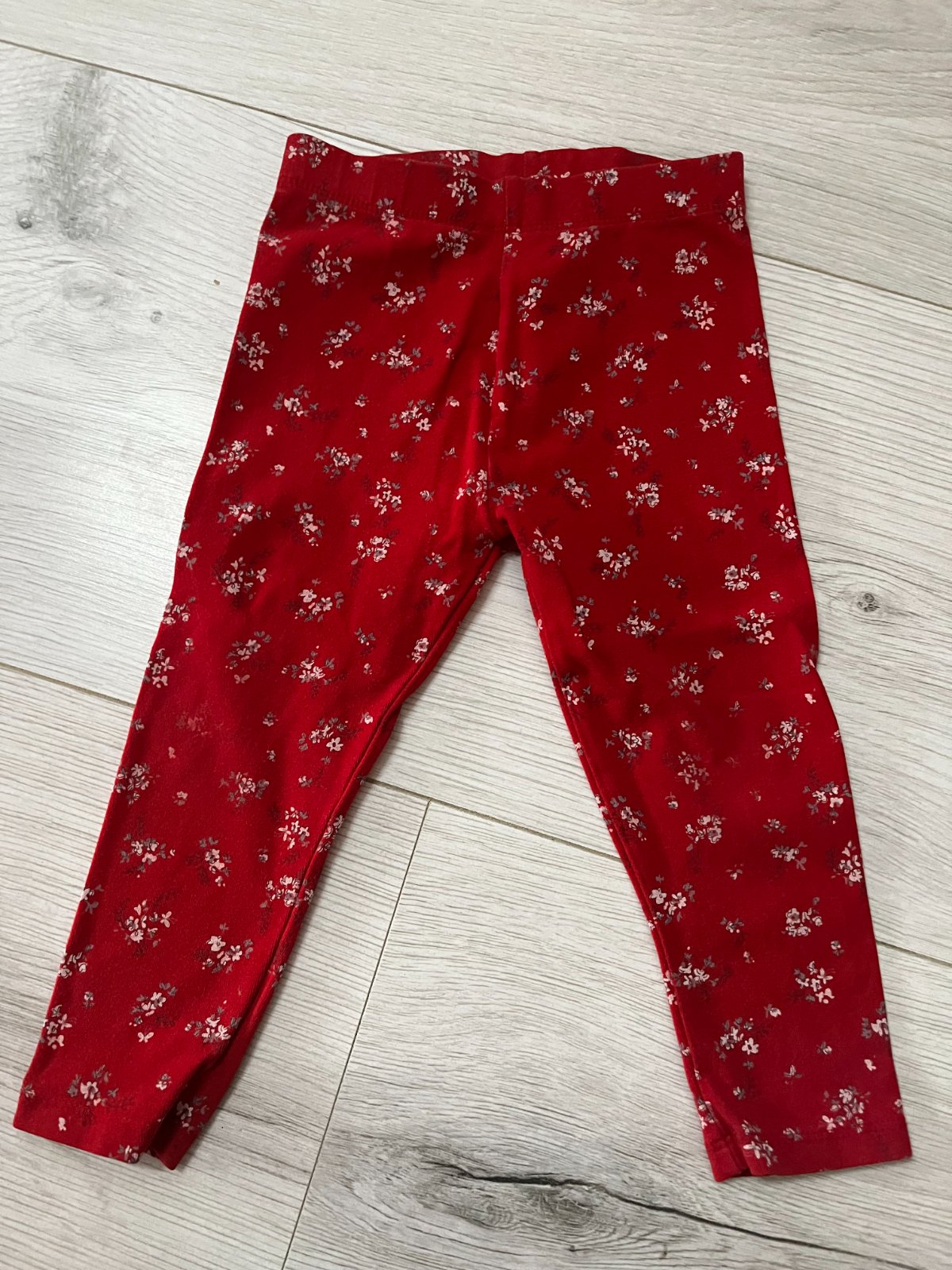 Predám červené legíny so vzorom kvietkov značky Next, veľkosť: 92. Na kolenách mierne vyšúchané.