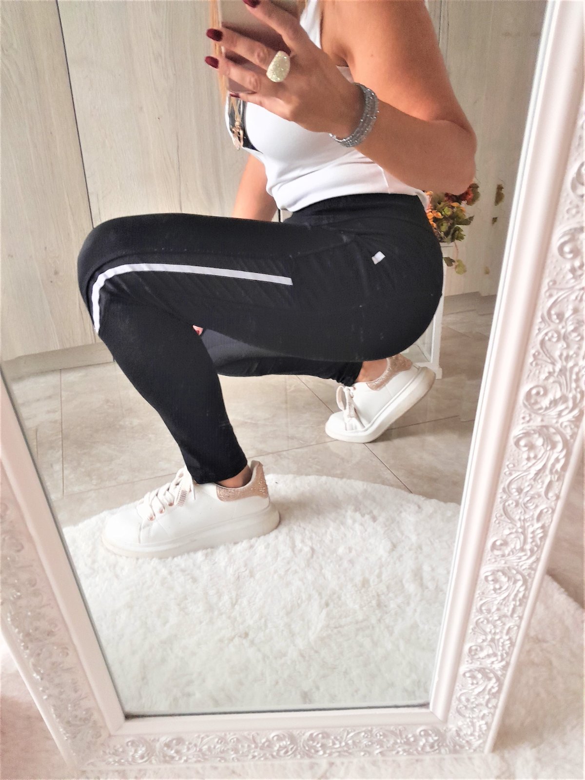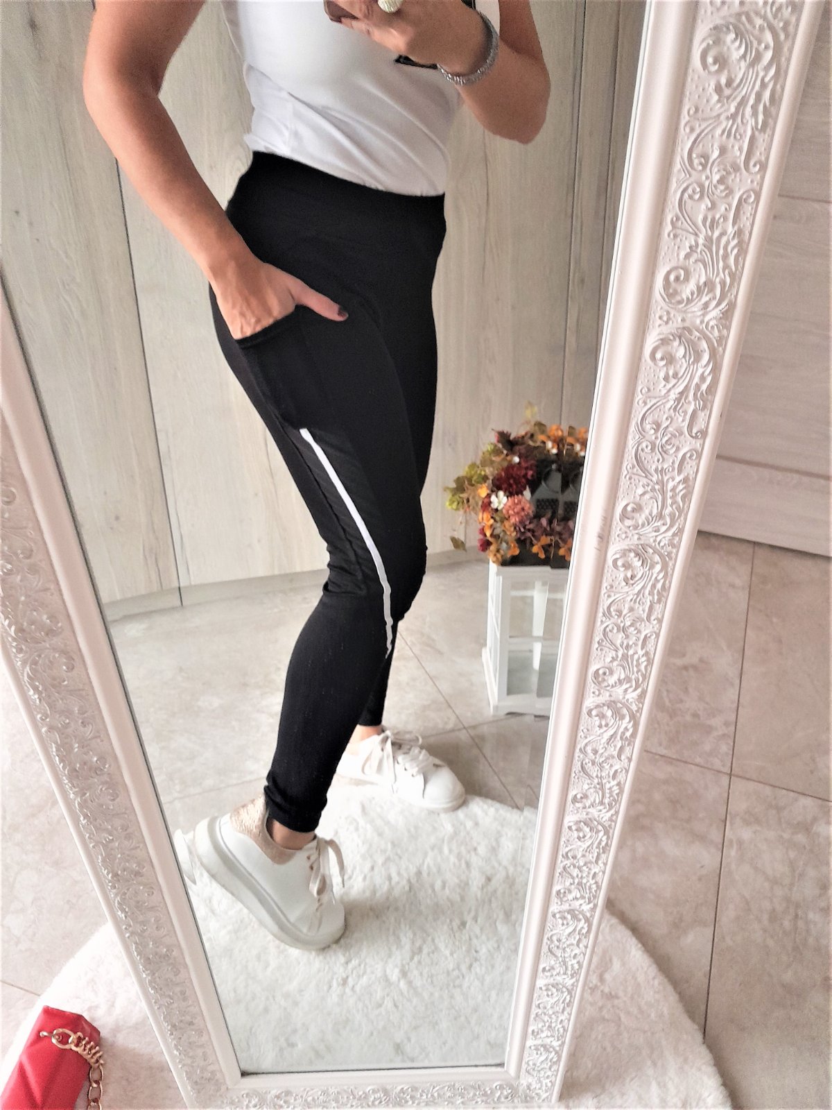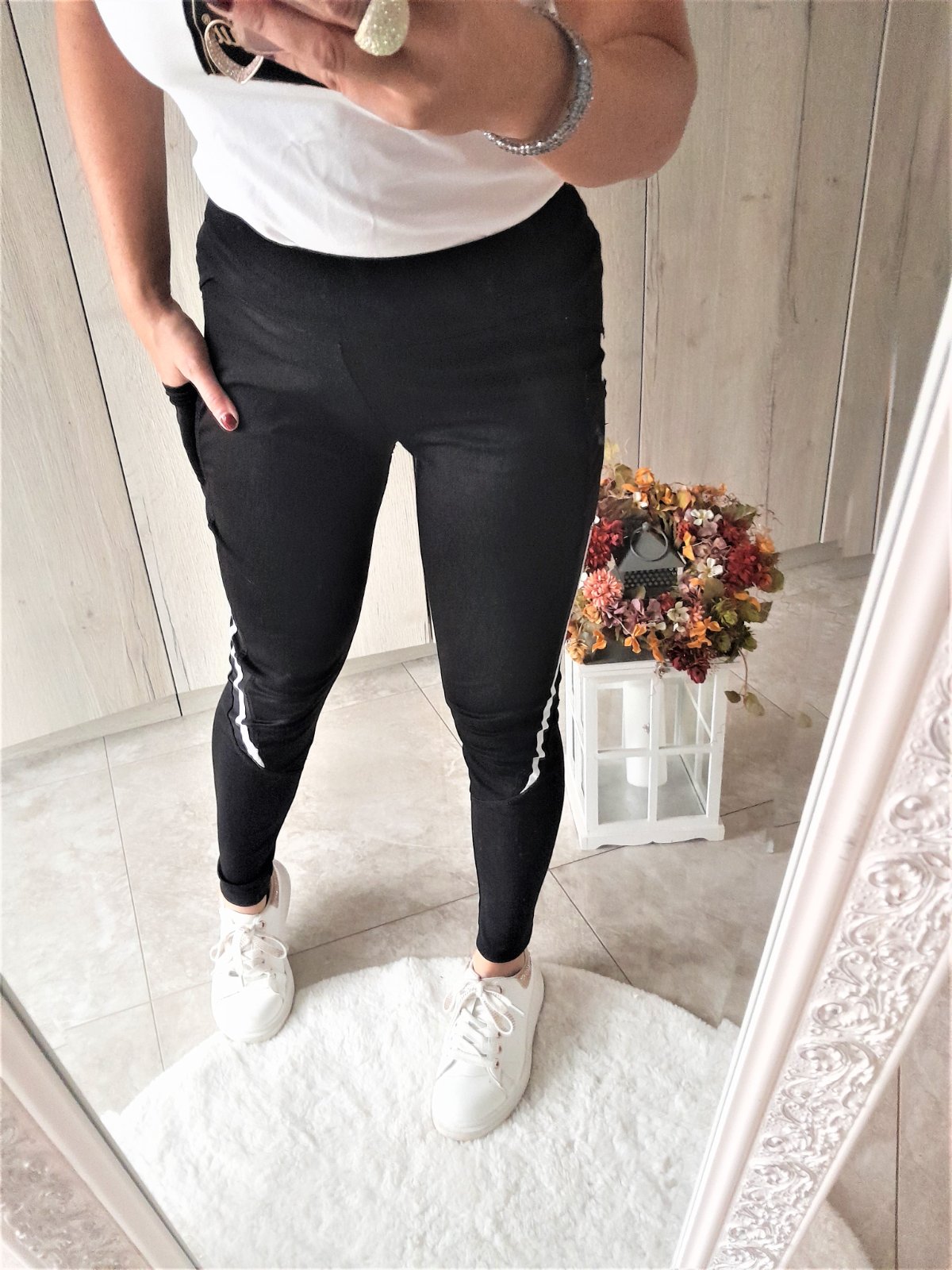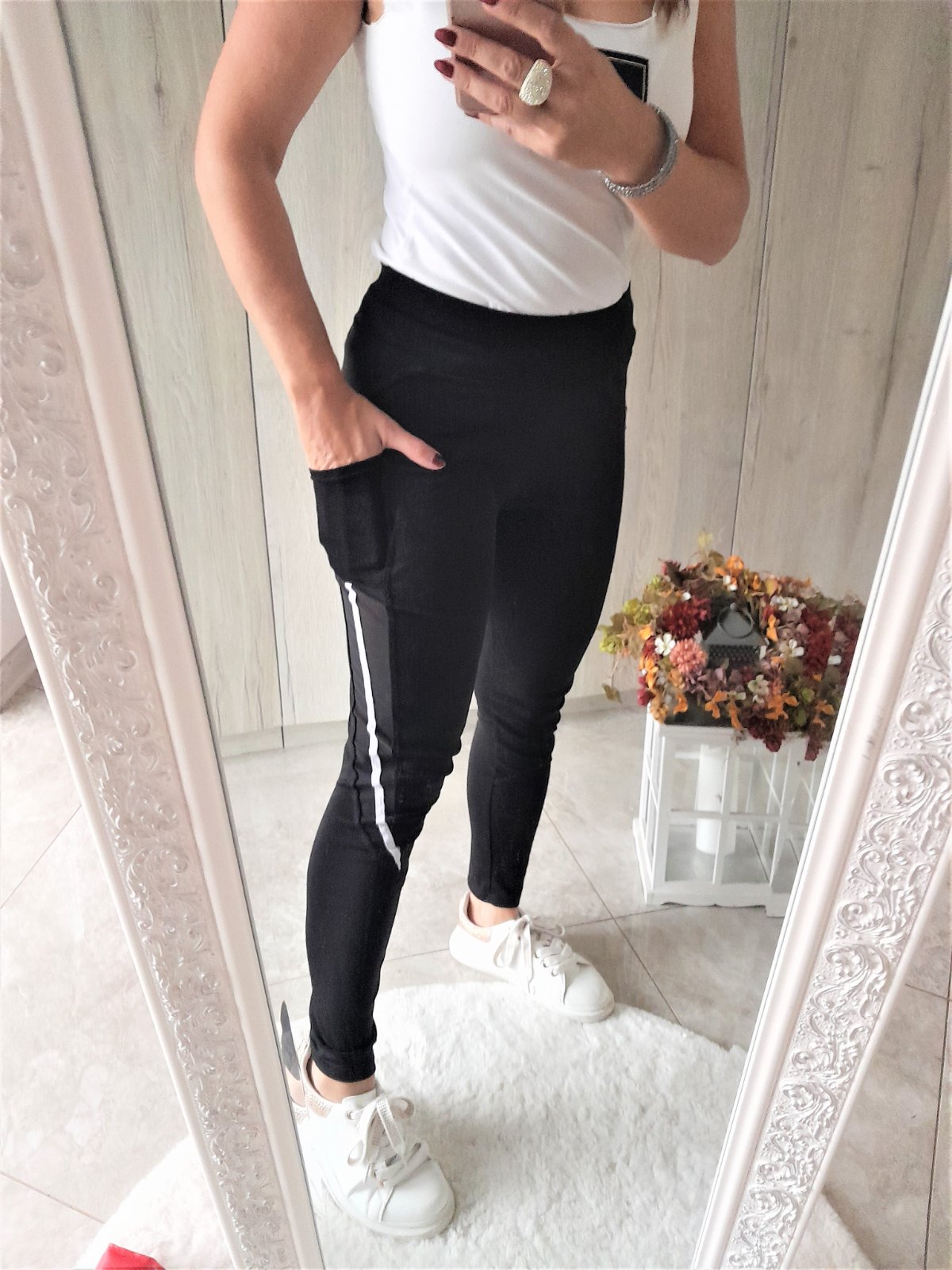 legíny sú nosené,s bočnými vreckami,písaná veľkosť S/M,ale sadne skôr na M-premerajte-dĺžka 92cm,pás 2x 31cm,boky 2x 43cm,85% polyamide,15% elastan...kuk aj na iné moje inzeráty