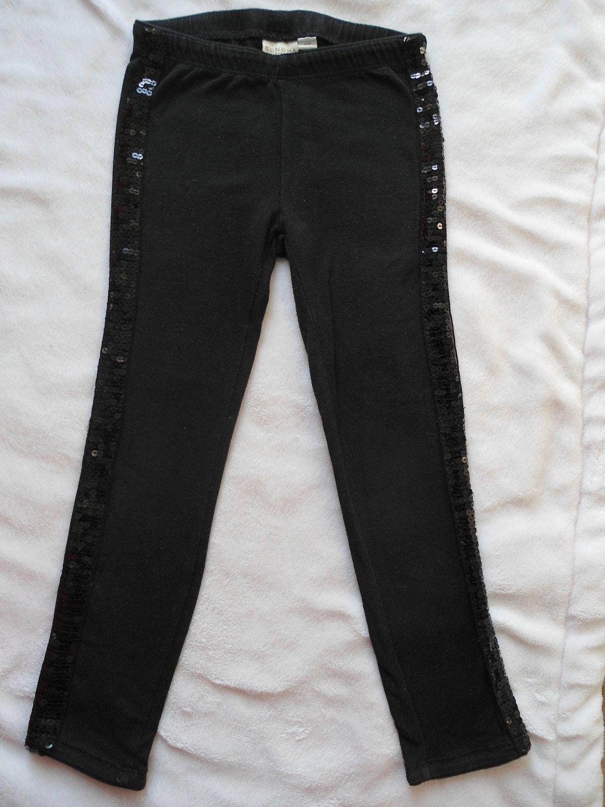 čierne legínky po bokoch s flitrami, veľkosť je písaná 4 - je to asi tak 104-110