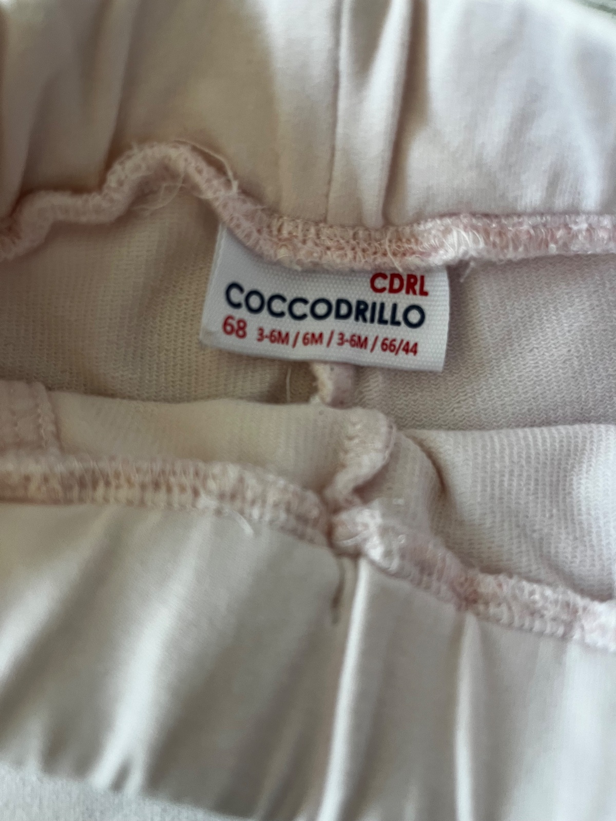 Predám hrubšie bledoruzove leginy značky Coccodrillo, veľkosť: 68 (3-6 mesiacov)