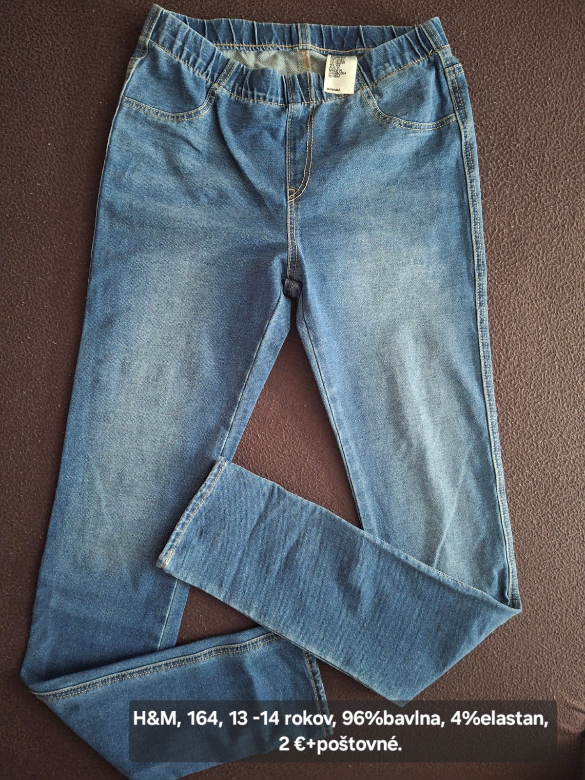 Predám málo nosené dievčenské džeginy, H&M, 164, 13-14 rokov, 96%bavlna, 4%elastan.