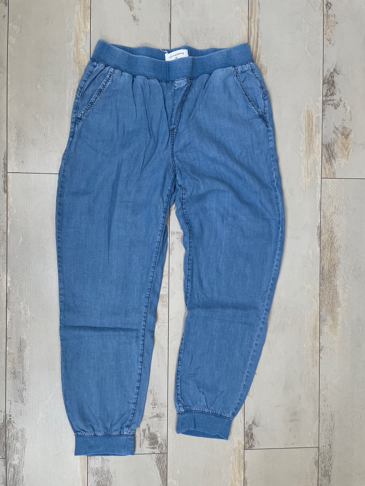 Tenke,letne riflove nohavice.Oblecene asi 2 krat ,zvnutra na pase ako je gumicka dierka po visacke