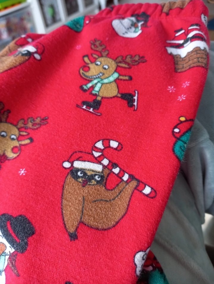 Zateplené legíny s veselými motívmi (perníček, Santa, leňochod, dinosaurus, snehuliak, sob Rudolf, darček) vhodné na obdobie Vianoc, sviatky, fotenie a škôlkarske besiedky. Málo nosené, perfektný stav. Hrubší flís zvnútra. Za mňa unisex.
