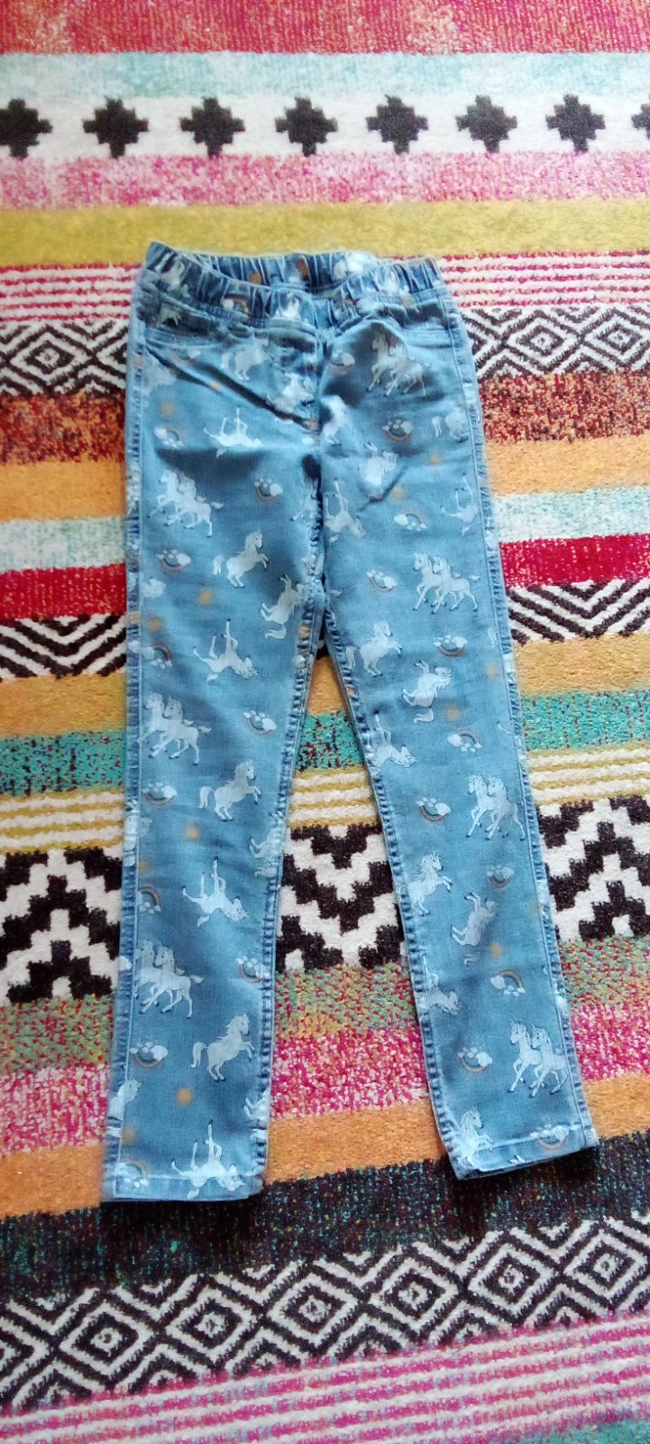 Prijemne pohodlne bavlnene leginy s elastanom dobre sa nosia v pase na gumu dobry stav. Mam k nim aj tricko s konikom a cardigan. Rozmery: dlzka 80 pas 60 povoli na cca 80