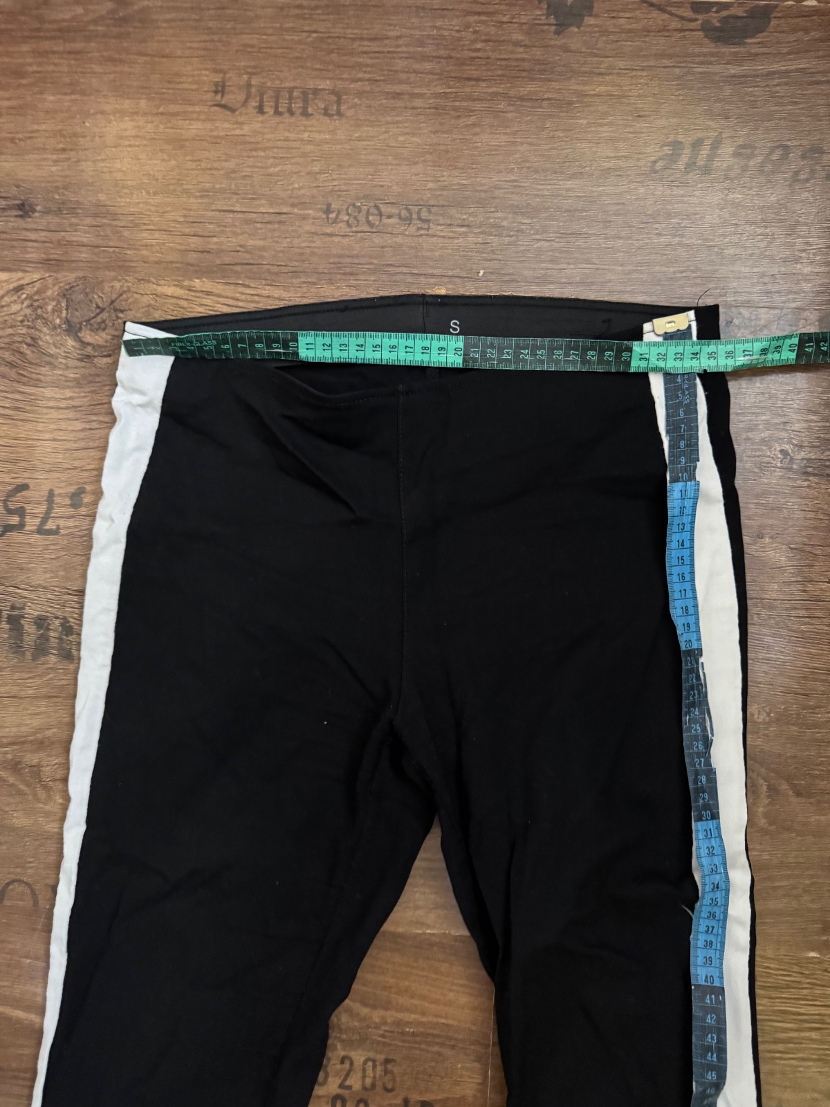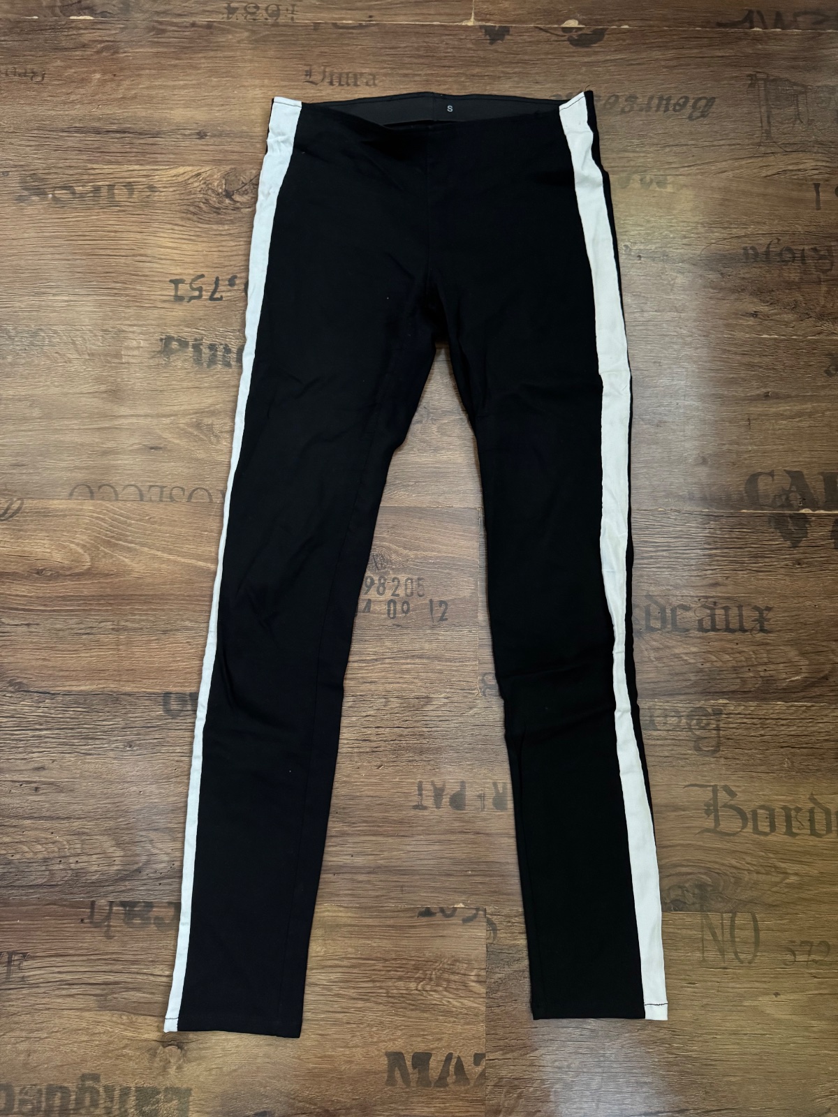 Ponúkam štýlové čierno-biele elasťáky na boku s bielymi pásmi. V páse gumka. Veľkosť uvedená S, čo aj sedí, ale pre istotu prikladám aj rozmery. Boli občasne nosené, naďalej v peknom stave. Poštovné podľa taríf.