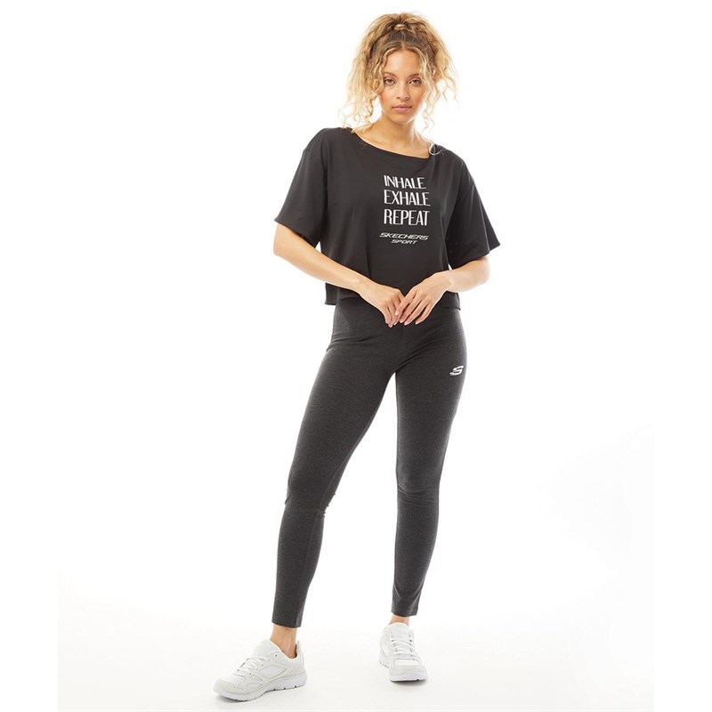 Dámske legíny SKECHERS s vysokým pásom, tmavosivá melírovaná