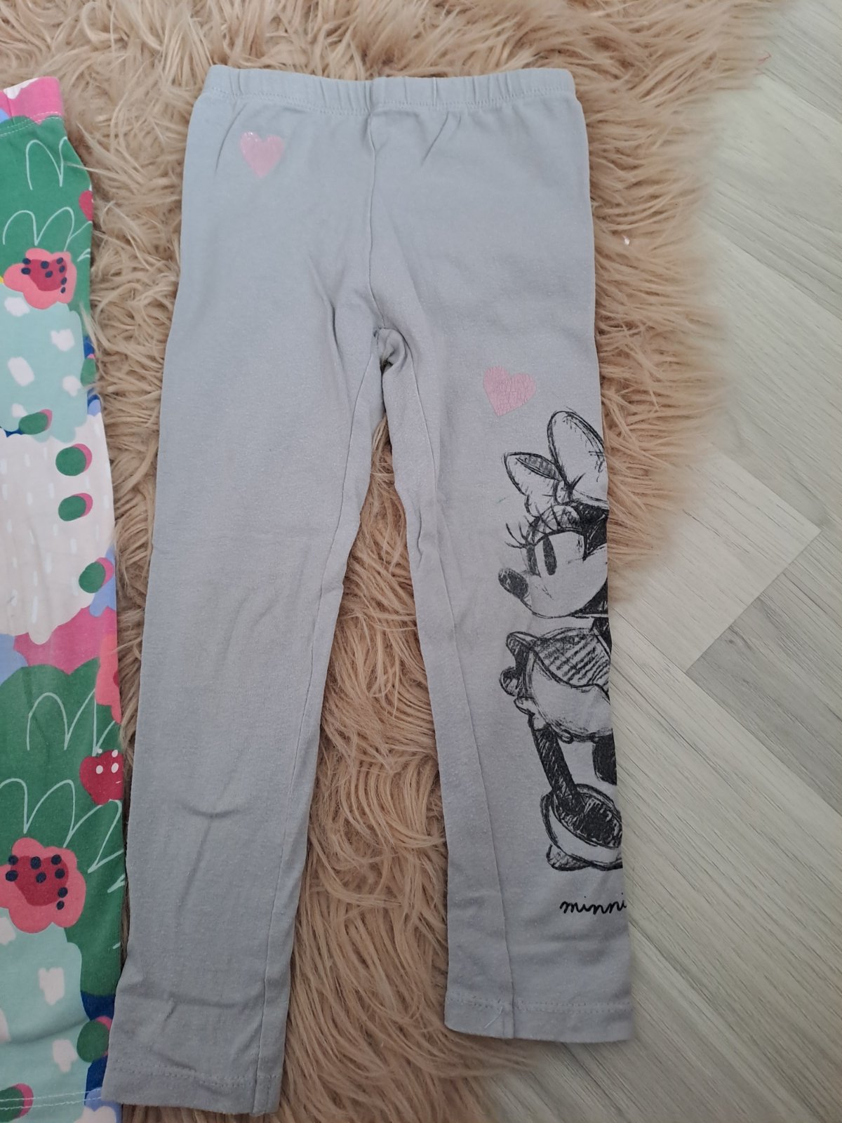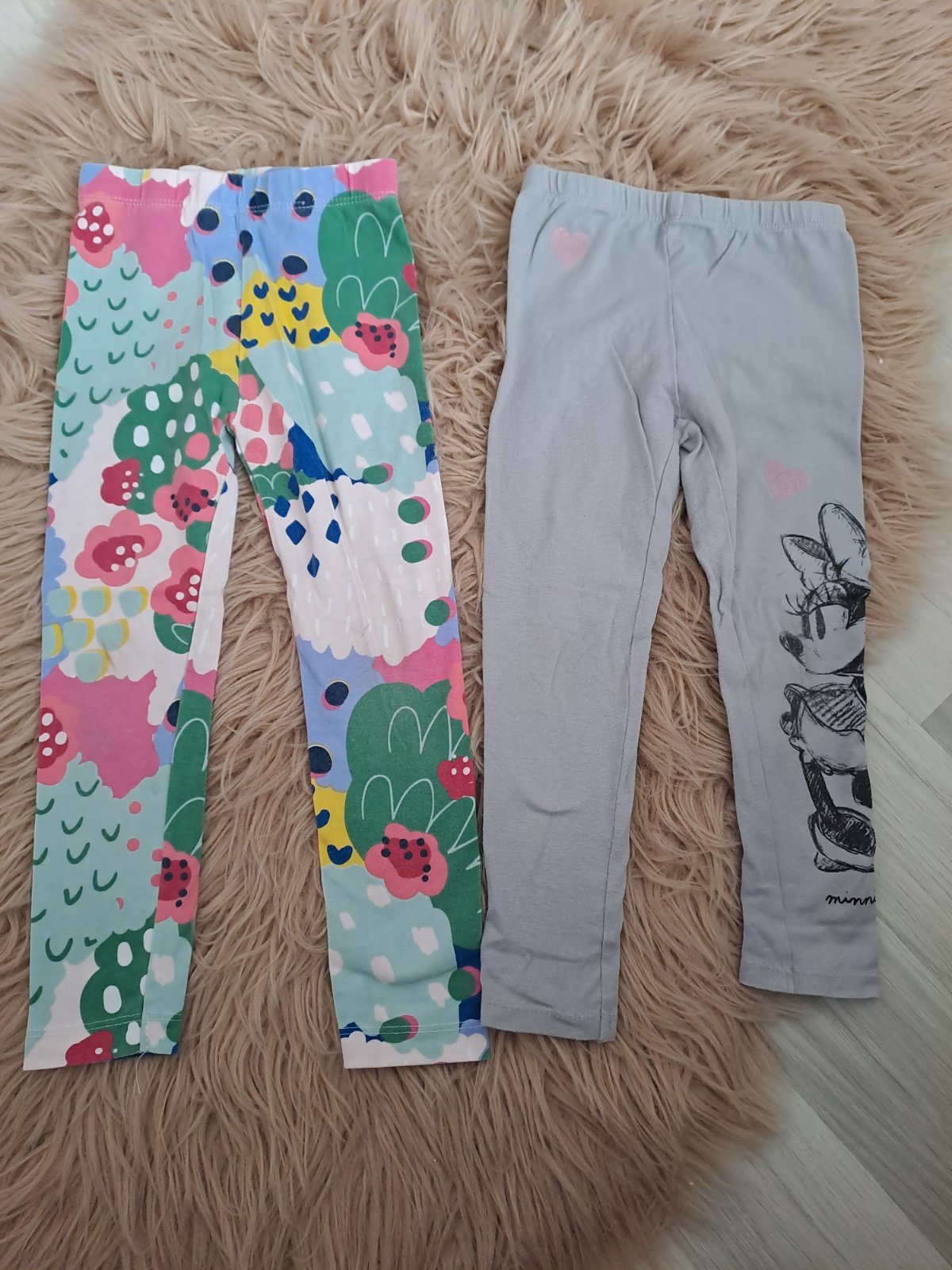 Dievčenské legínky 2ks. Sivé s Minnie zn. Reserved, bez poškodení. Farebné zn. Little kids, tie majú na kolienkach šmuhy/neskúšala som odstraňovat (viď. foto). Oboje veľ. 104.