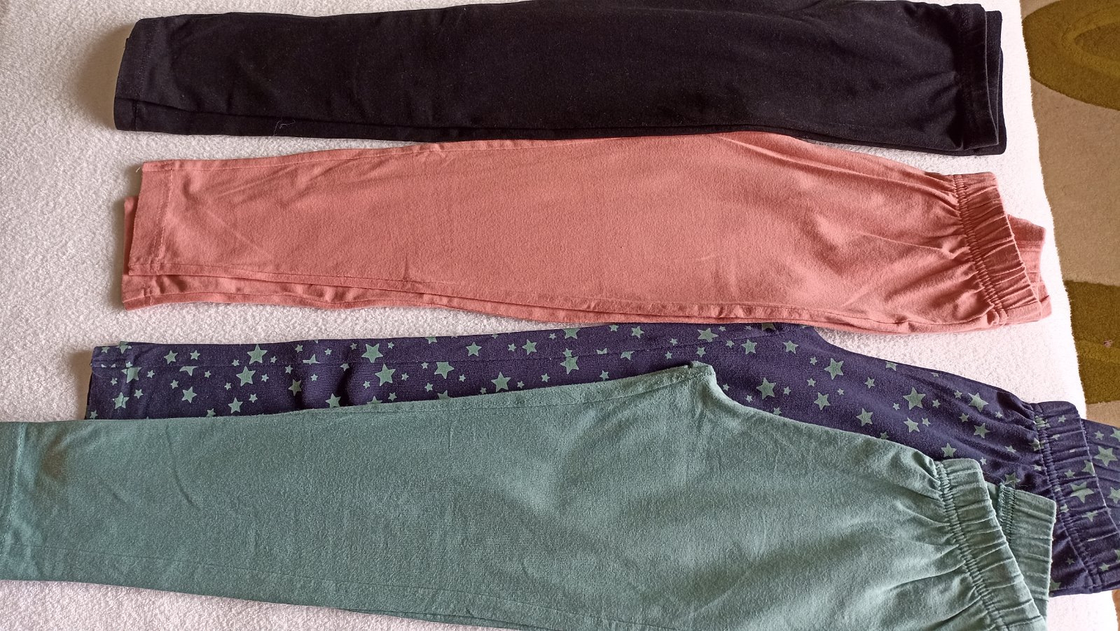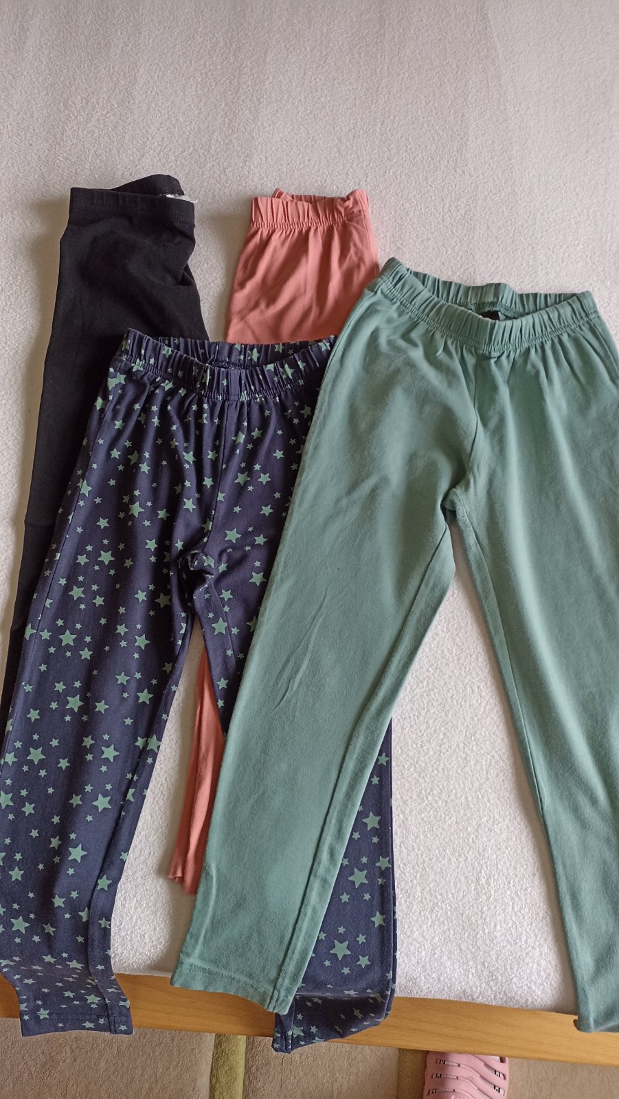 Ponúkam na predaj legíny po dcére, zelené, hviezdičkové a ružové sú z Bonprixu, čierne z Gate. Majú bežné známky nosenia - sú v dobrom stave, bez fľakov. Cena je za všetky bez pošty.