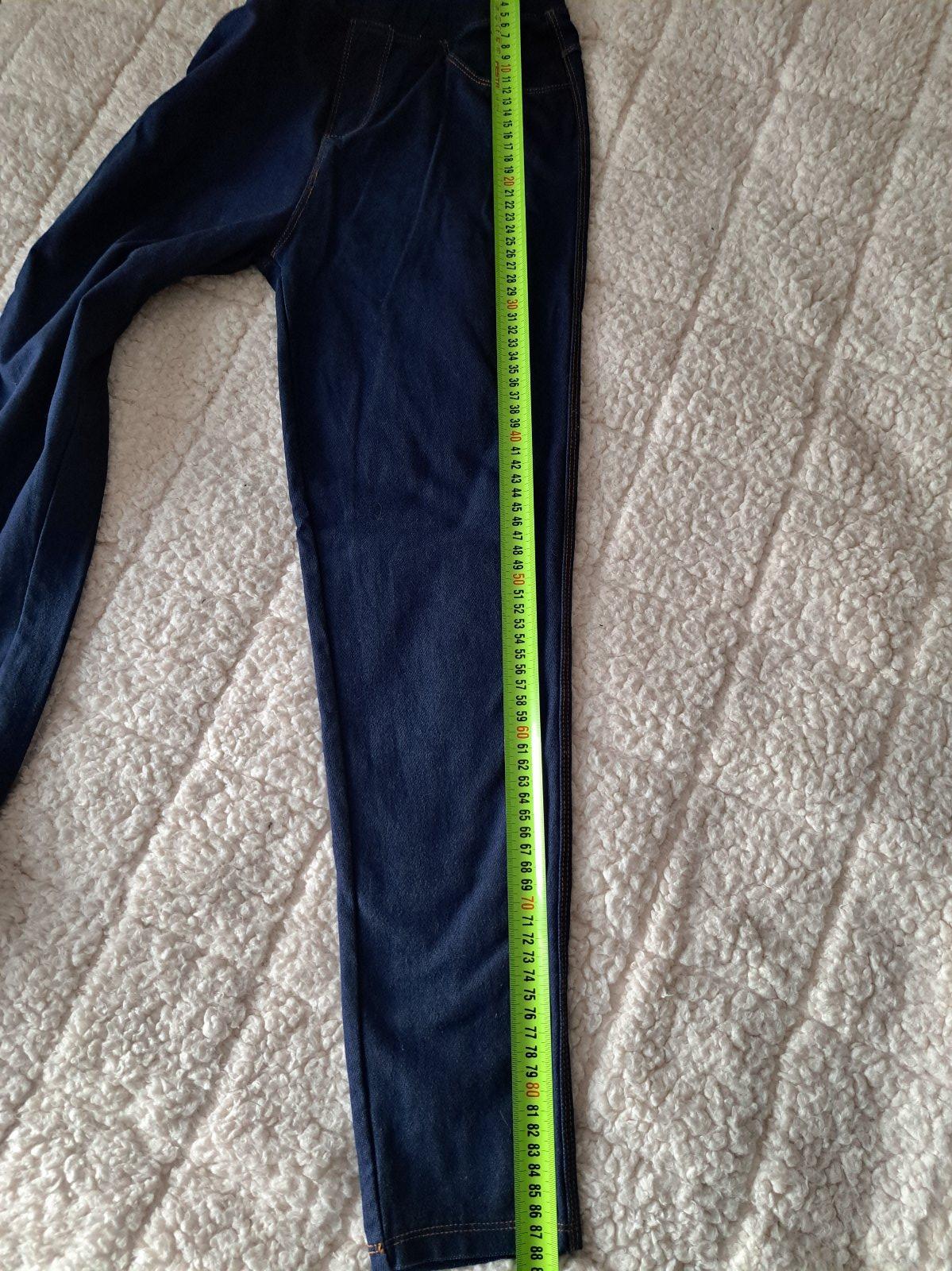 Tenšie legíny, minimálne nosené. Rozšírený strih, dole efektné "vlnkovanie". Rozmery: pás: 2x28cm, dĺžka vonkajšia: 96cm , vnútorná: 72cm. Bez poškodení, v super stave, nevyblednuté. Cena spolu.
