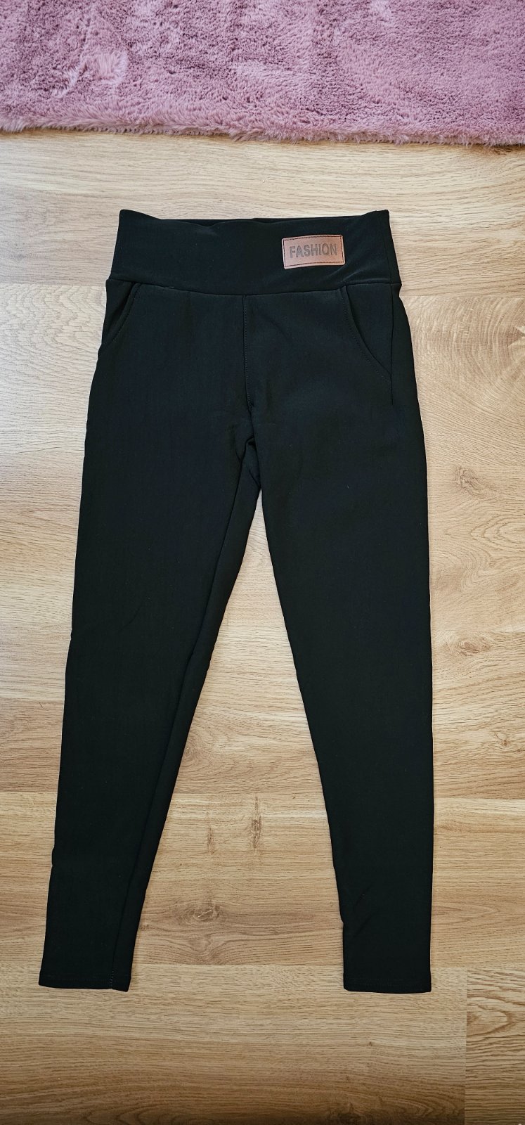 Legíny s prednými vreckami, zateplené plyšom, veľkosť S