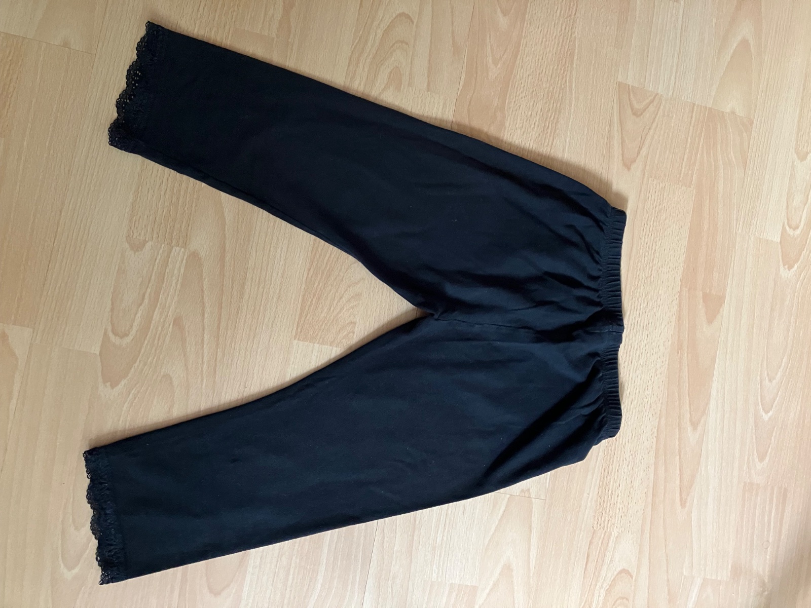 3/4-ťové legíny v dobrom stave. Veľkosť 158/164. Dĺžka 60 cm, od rozkroku 40 cm, pás v kľude 60 cm (gumička).