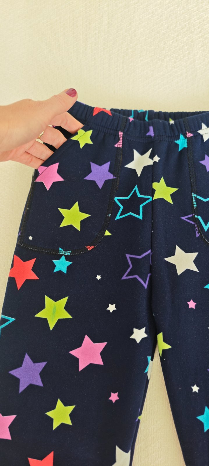Predám tieto krásne (pekná potlač na tmavomodrom podklade), zateplené legíny vo veľkosti 134/140. Zvnútra majú akoby mäkký plyš. Sú veľmi príjemné na dotyk a spredu majú aj 2 vrecká. Leginky sú ako nové, dcéra mala veľa oblečenia a rýchlo vyrastla.