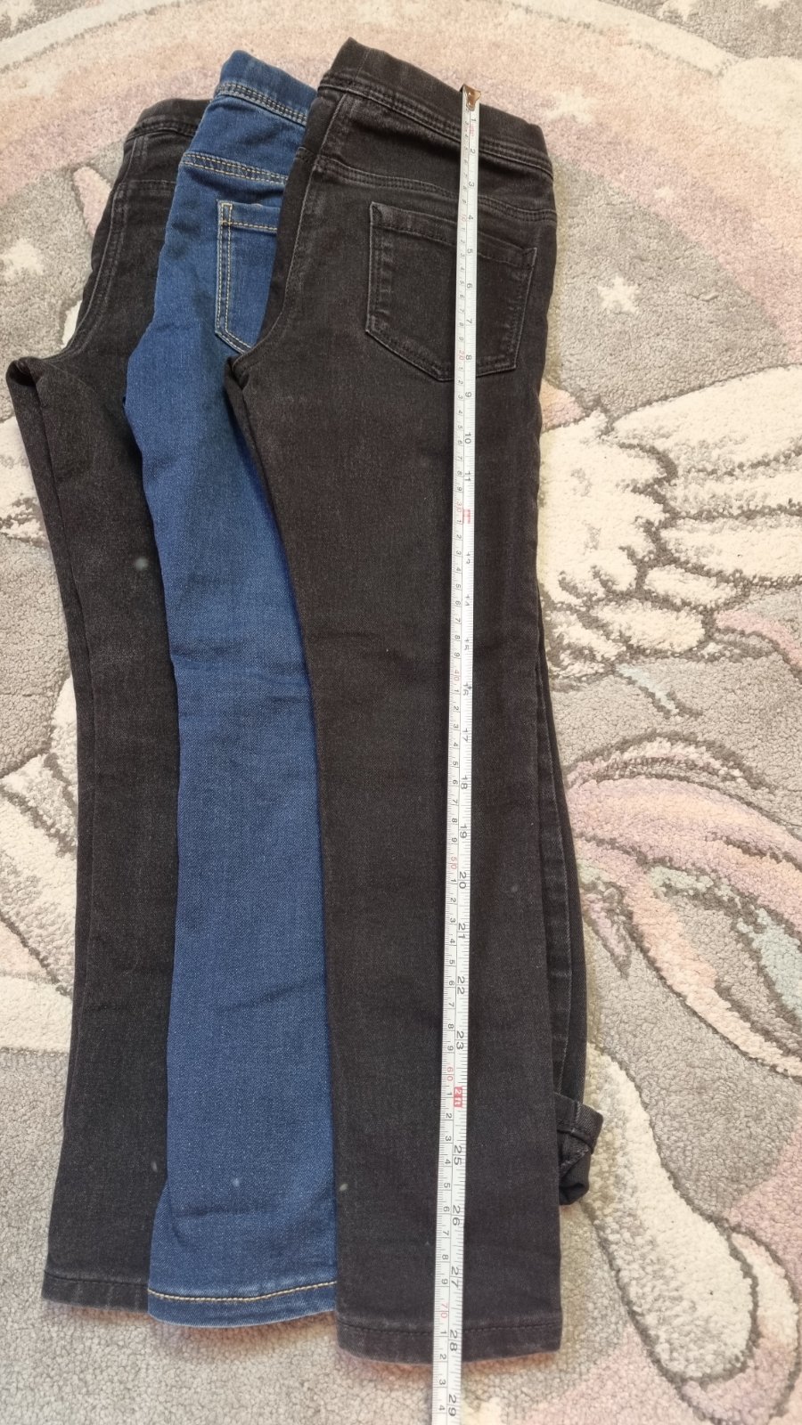 Predám kvalitné jegginsy - teplé, čiernej farby, pružné, vo veľkosti 128. Bez vreciek a bez zipsu, majú iba ozdobné prešitie. Výborný stav bez dier, fľakov a bez vydraných kolien a zadku. Na požiad...