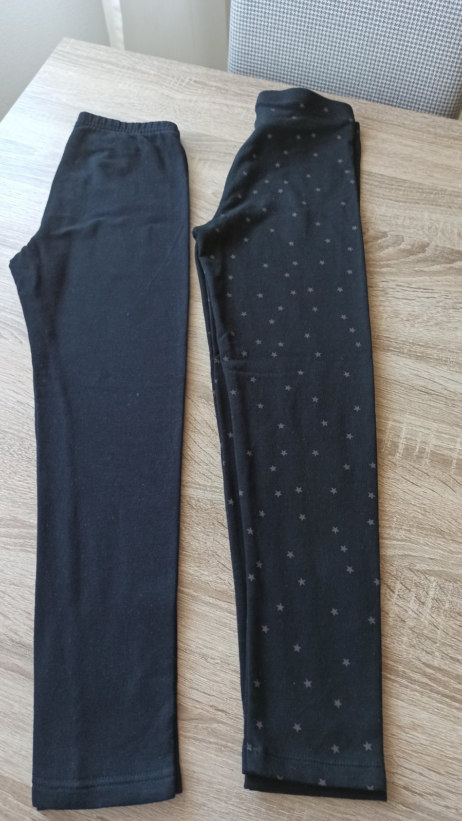 3ks-Čierne bavlnené termo legíny č.140/146 celková dĺžka 75cm, vnútorná dĺžka 55cm, pás meraný v kľude 2x26-27cm. Zn. C&A 2kusy, čierne tenké legíny č.140 zn. H&M celková dĺžka 78cm, vnútorná dĺžka 57cm, pás na gumu 2x27cm. Dobrý nosený stav. Len spolu.