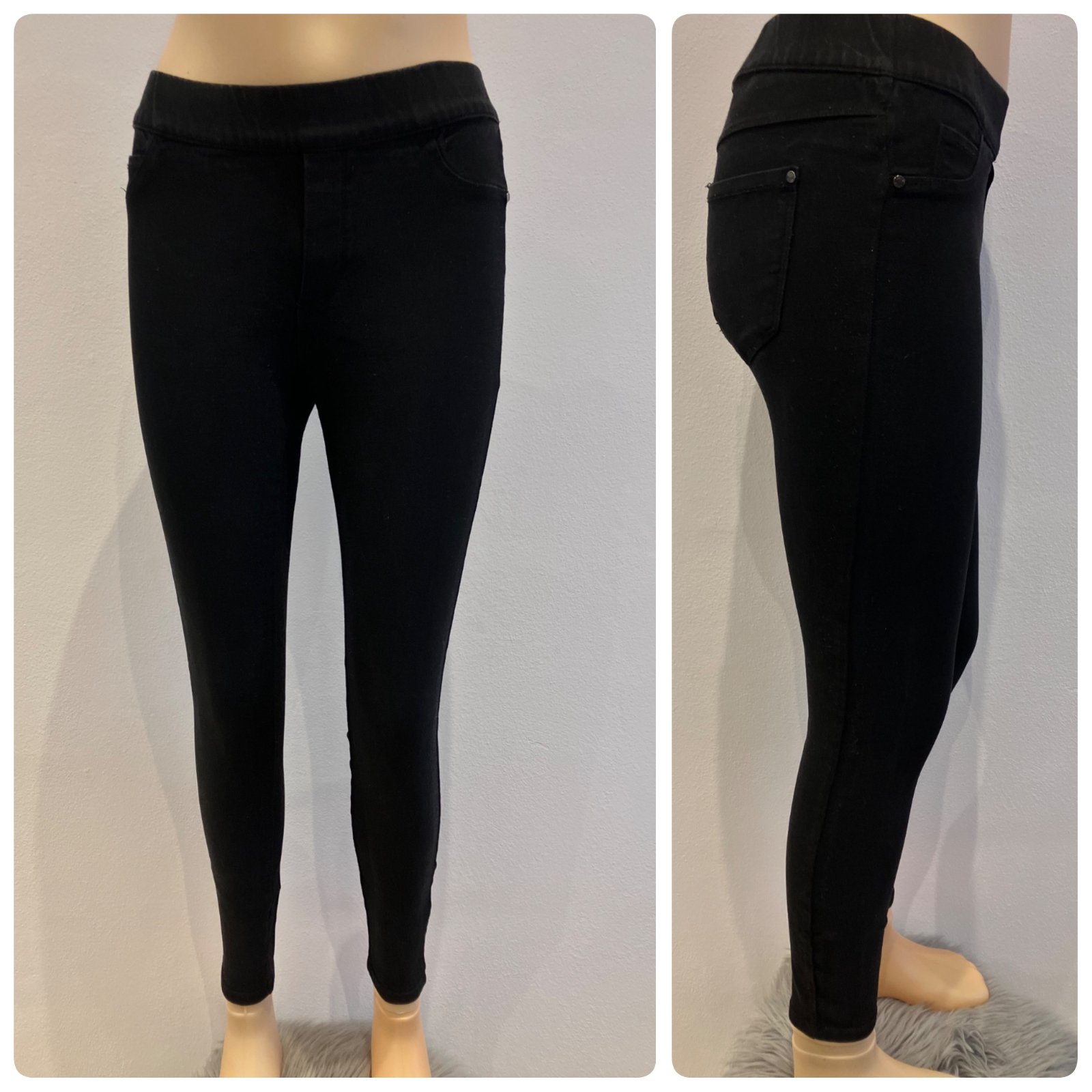 Dámske rifľové legíny, pás na gumu, elastické, materiál 65%bavlna 30%polyester 5%elastan.
