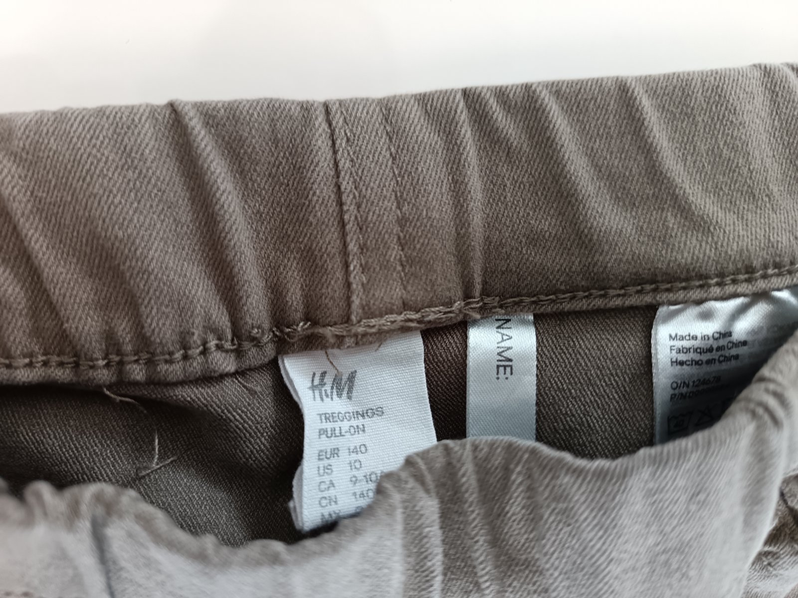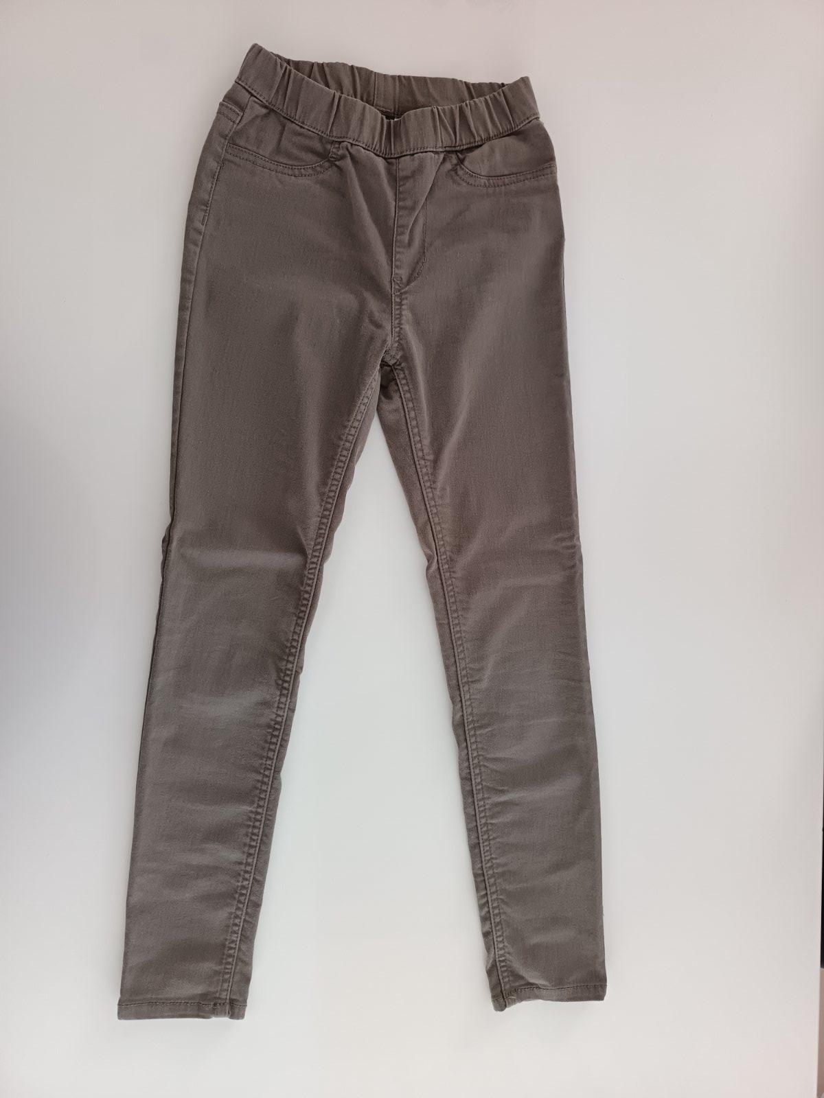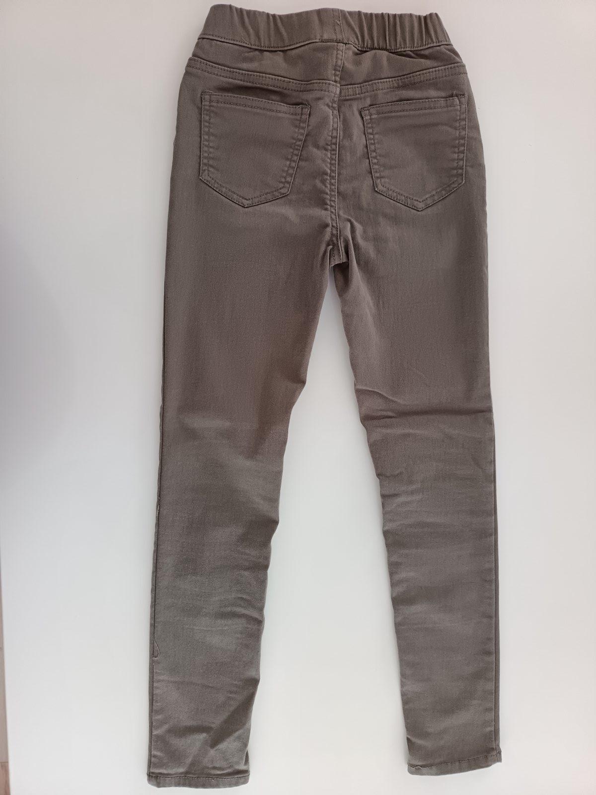 Olivové riflove legíny, v páse na gumičku, zo zadnej strany dva funkčné vrecká, zpredu vrecká nefunkčné, mäkký materiál, pekne sedia na postave. Bez poškodenia