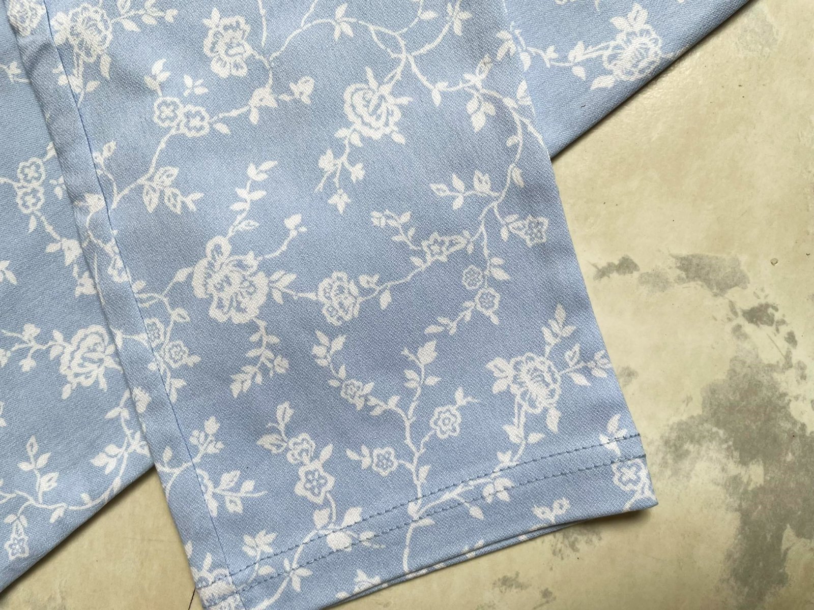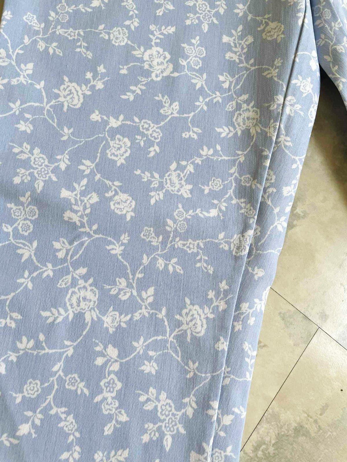 perfektne sediace pružné pevné riflové legíny s letným kvietkovaným vzorom,sú iba preprané po skladovaní,perfektný strih a kvalita,majú vysoký pás a sú veľmi pohodlné,obsahuju viskózu,elastan a nylon - zloženie vyfotené
