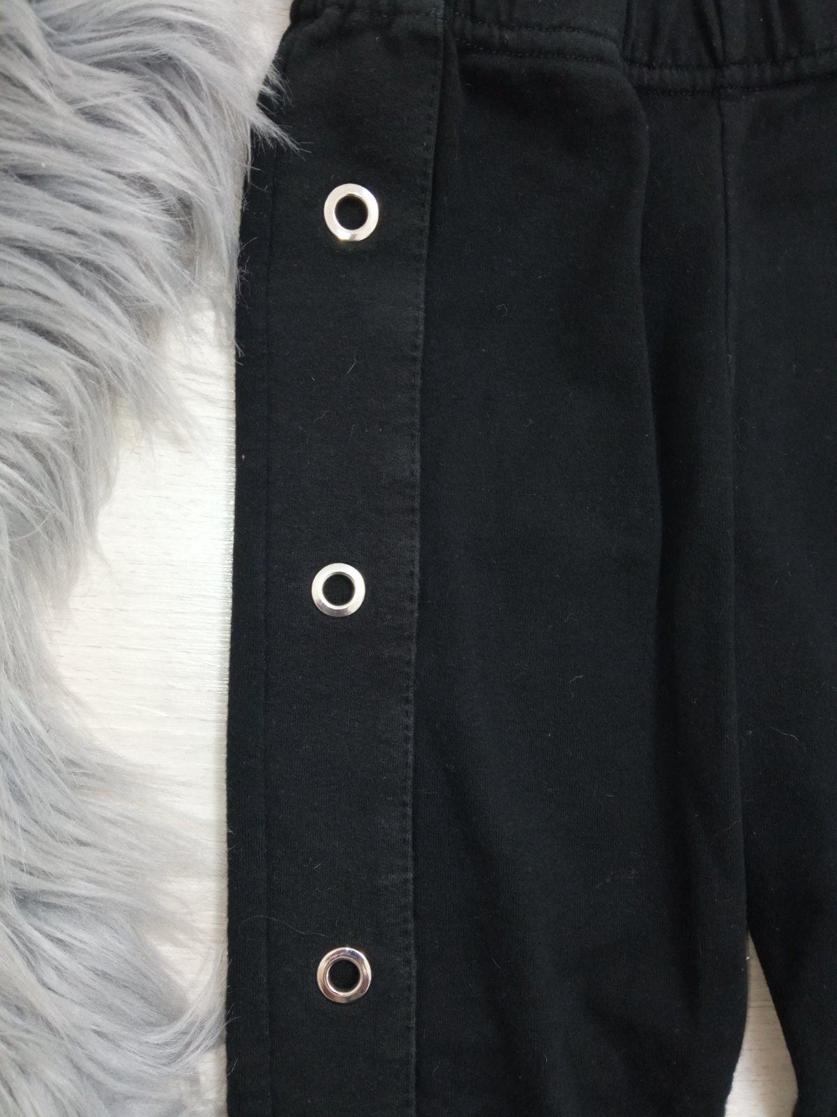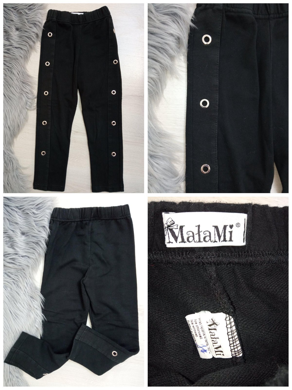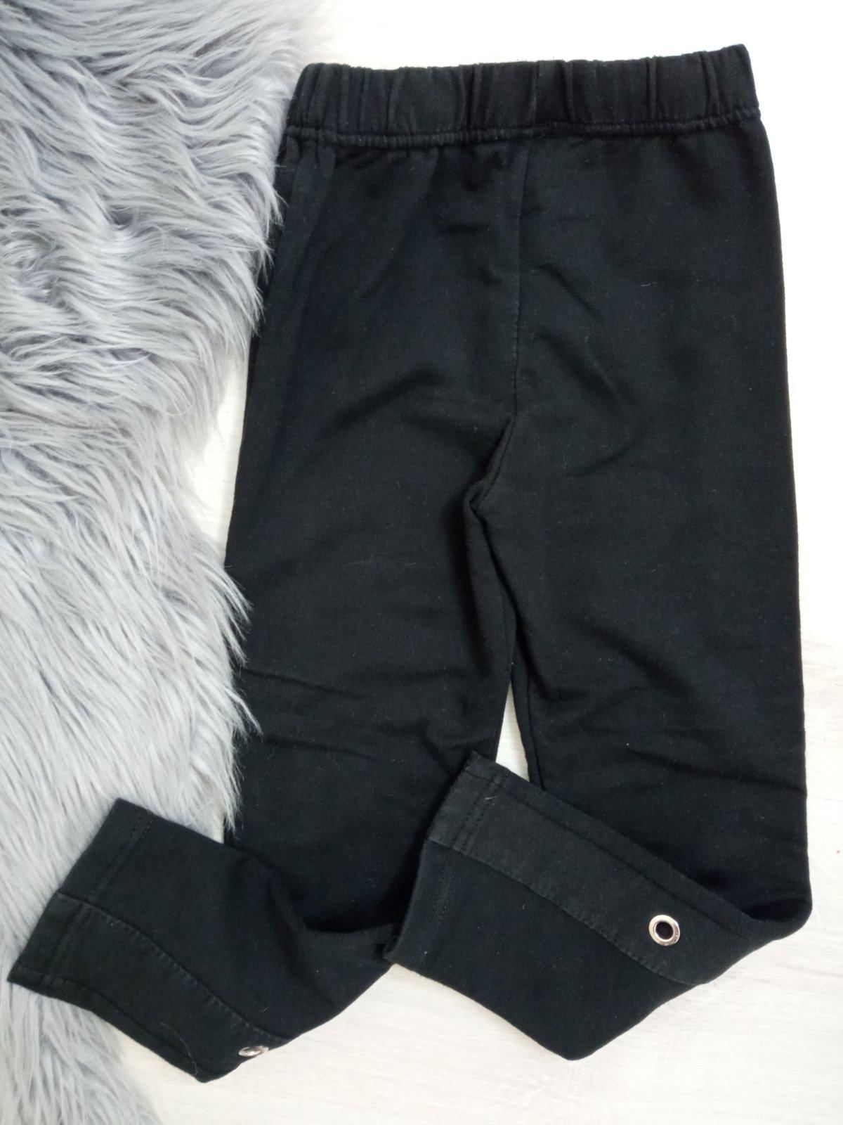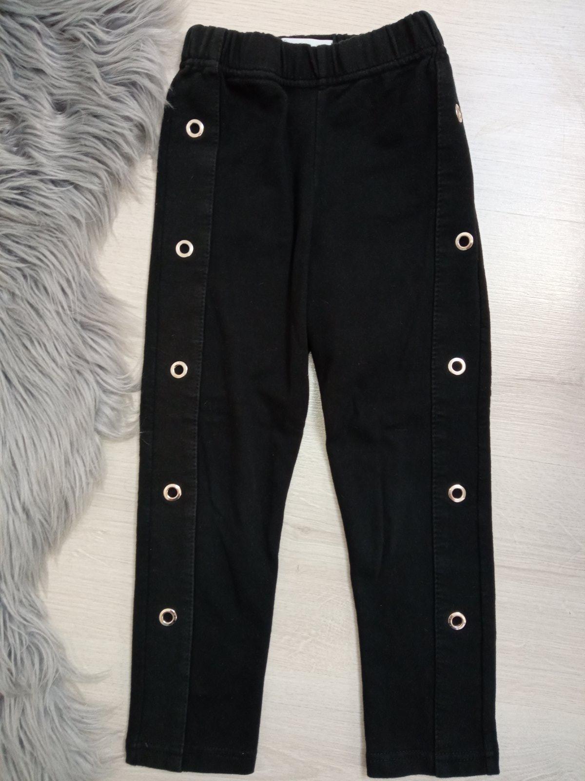 Dievčenské čierne legíny, nie sú zateplené ale sú hrubšie, dekoratívne prvky na boku. Pás na gumu. Elastické. Dvojité číslovanie 110/116. Materiál: 95% bavlna,5% elastan.