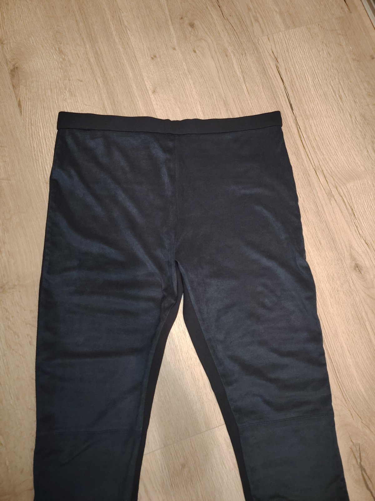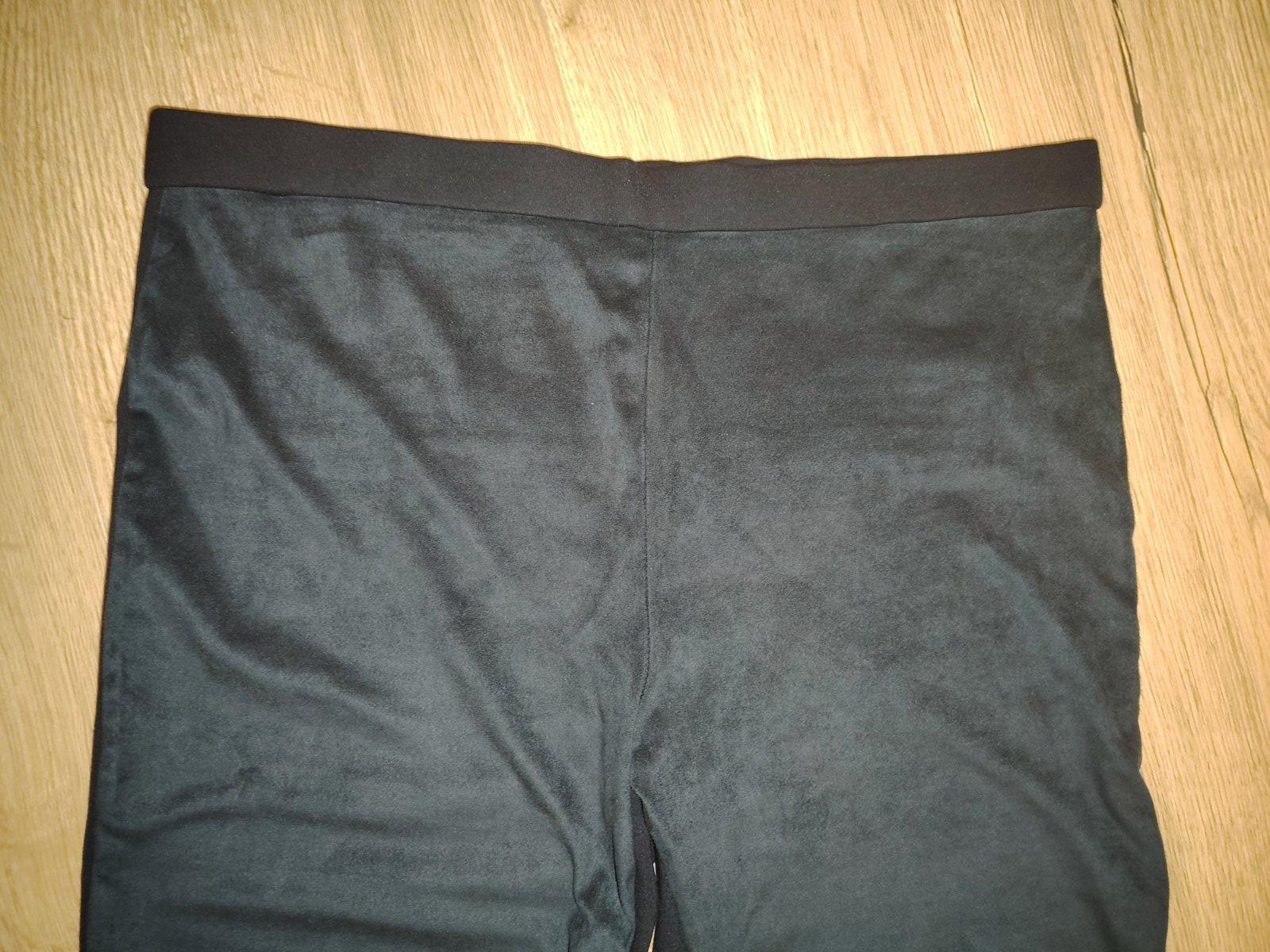 Nohavice nenosené, bez visačky. Zaujímavé riešenie, vpredu velúr, vzadu úplet. Pás 43-46cm, dĺžka 99cm, vnútorná dĺžka 74cm, stehno pod rozkrokom 27cm.