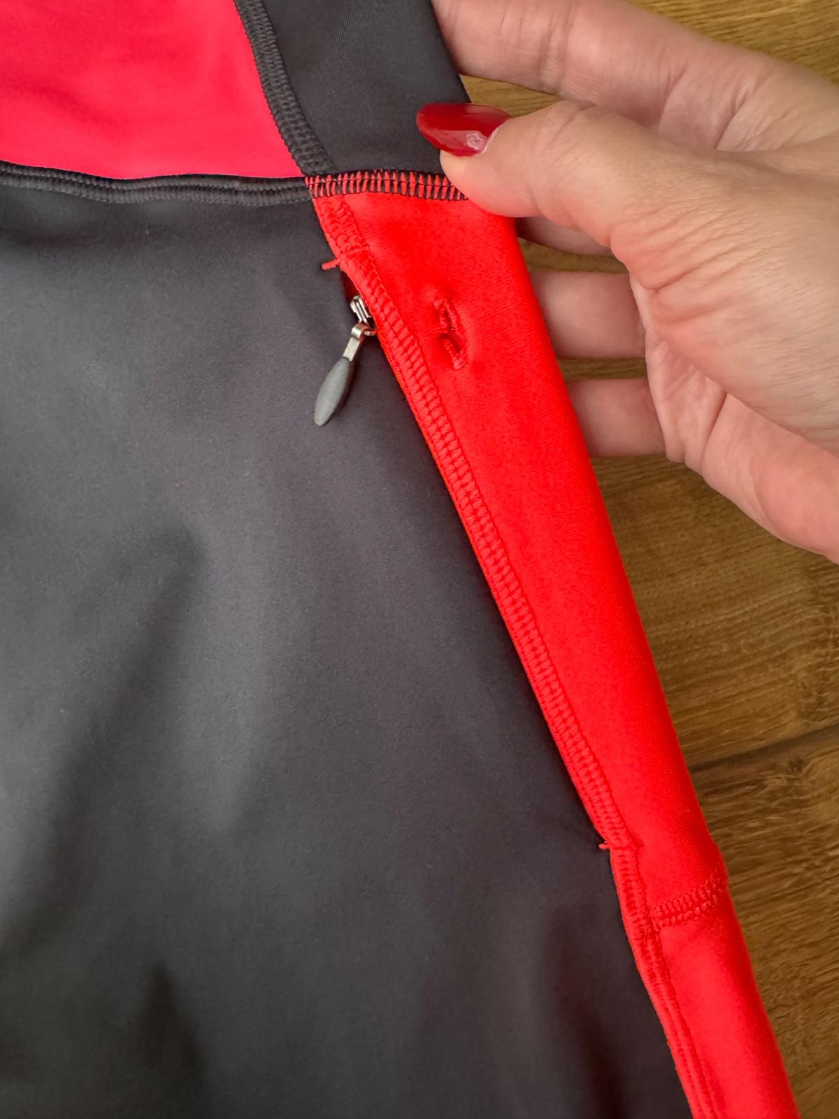 oblecene 1x, ako nove, maju vrecko na zips kde sa da dat mobil, odstrihla som na nich zvnutra stitok lebo bol velmi dlhy a skrabal