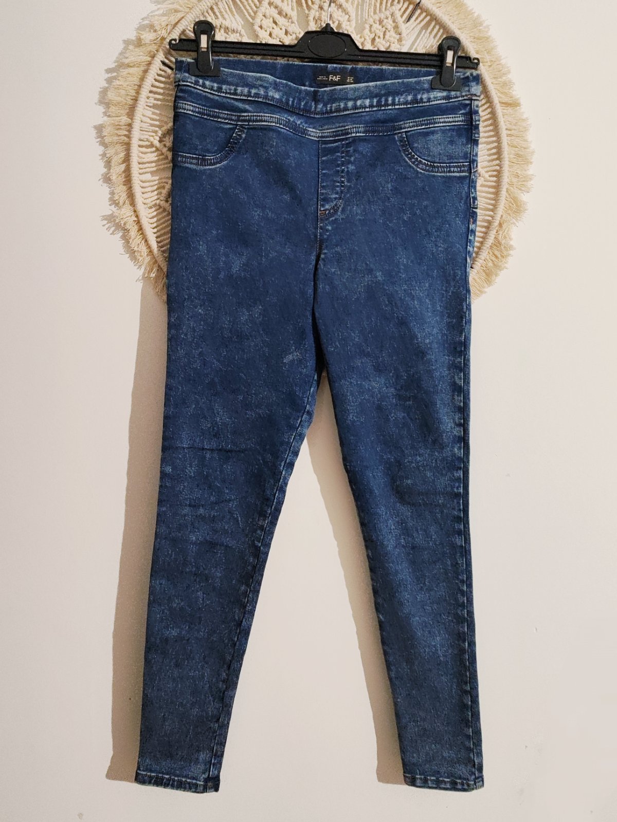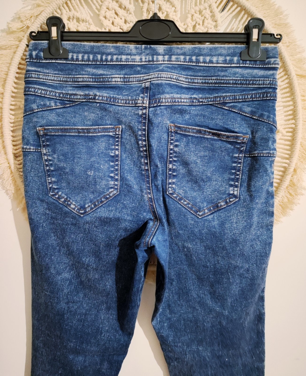 Krásne rifle s dierami na kolenách oblečené asi 2x. RE-DRESS veľkosť L, zapínajú sa vzadu na zips. Top stav. Tenšia rifľovina v páse elastické. Pás 37 cm, zadná dĺžka cca 100 cm. Reál farba skôr ak...