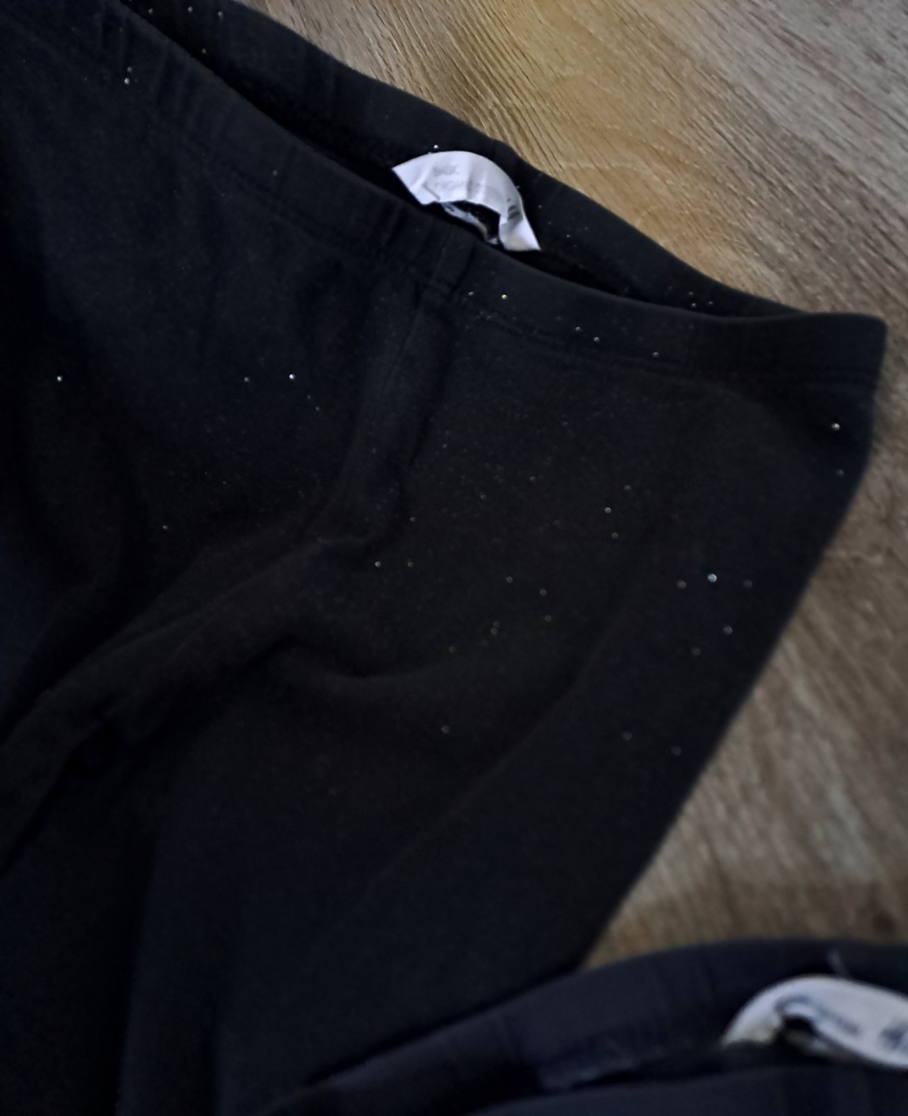 Batikové leginy+ pridám iné. Jedny majú trblietky len hore a dole tie čierne, lebo sa zošúchali. Spolu len predam, tie sive su vrubkované lepsie sfotit nejde.