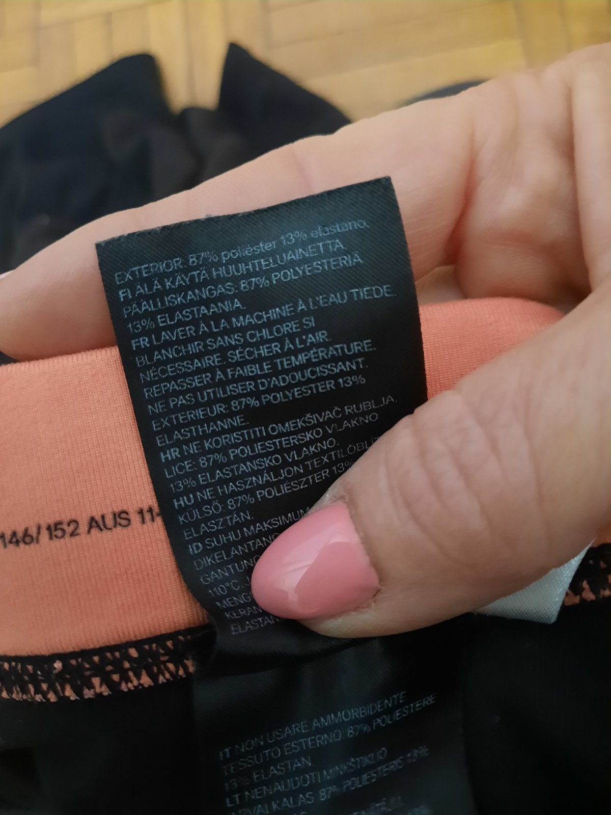 dievčenské elastické čierne legíny, v páse na gumu, príjemný kvalitný materiál, zloženie : 95 % bavlna, 5 % elastan, stav: výborný, málo nosený, značka: H&M, uvádzaná veľkosť na štítku 10-11 rokov,...